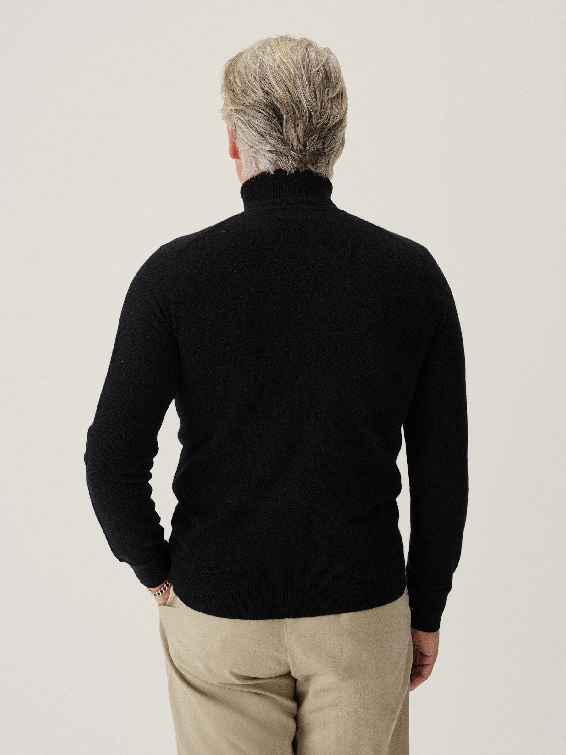 Classic turtleneck cut from our proprietary year-round featherweight cashmere. Fine-gauge and super soft. Ideal as a base-layer, or worn over a tee. Details include features subtle vintage racking, and tubular stitch details at the neck, cuffs, and hem.