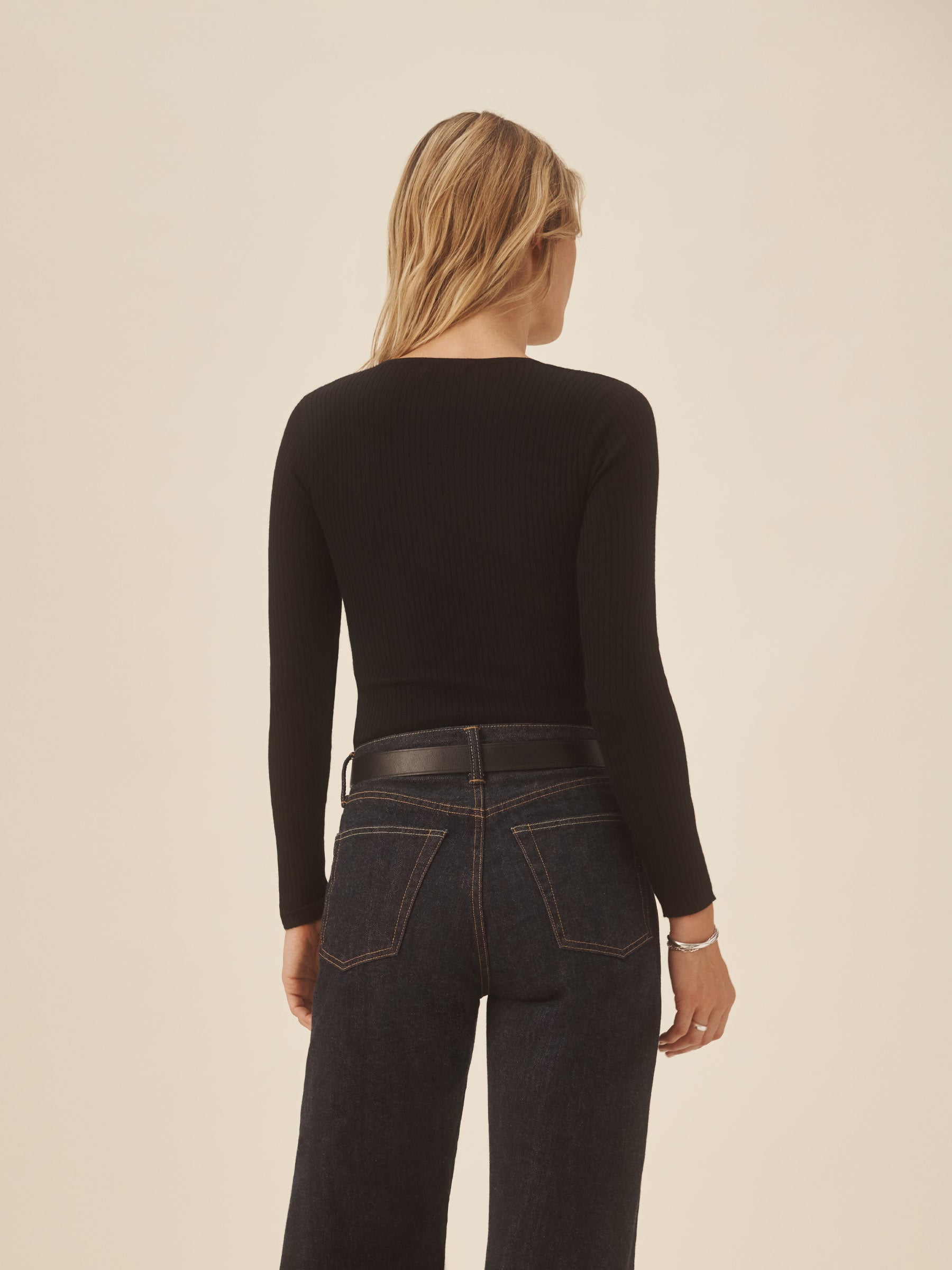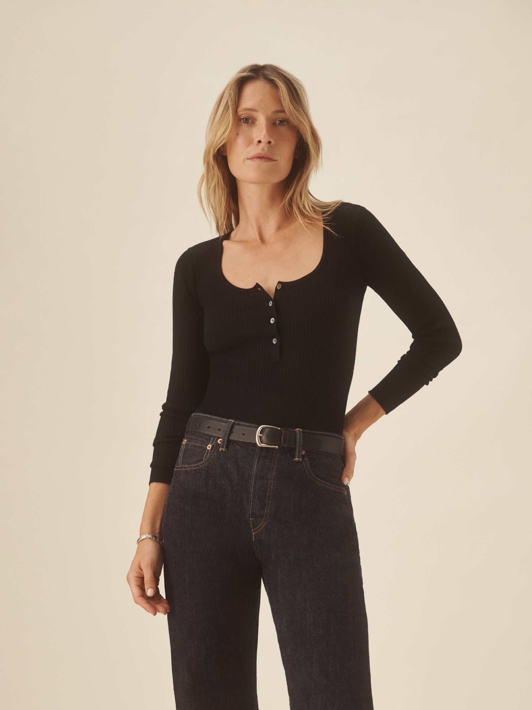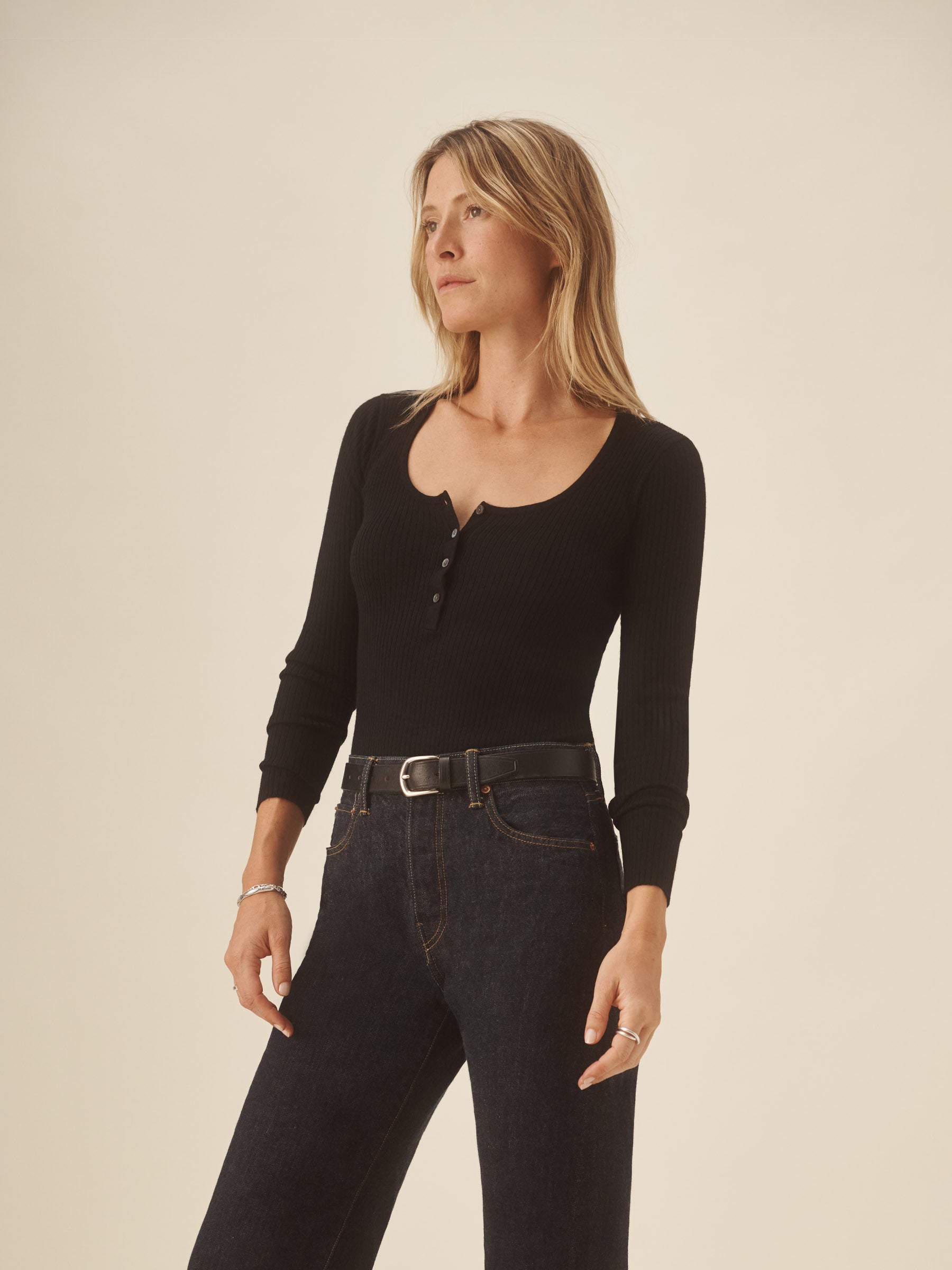 Black Featherweight Silk Cashmere Scoop Henley