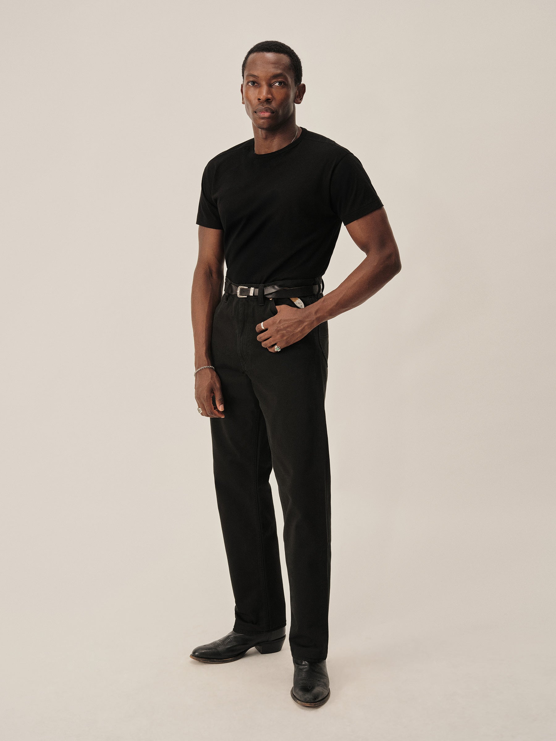 Made in collaboration with Lee, a faithful reproduction of the 1960s Westerner Jean-built in the silhouette of authentic archival pieces and cut from 11.5 oz. Japanese cotton sateen. Designed with a high rise and tailored leg, and finished with a brass Talon 42 zipper, reproduction Lee tack buttons, copper rivets, and the original Lee “Lazy S” stitch at the back pockets. Stone washed for a broken-in feel.