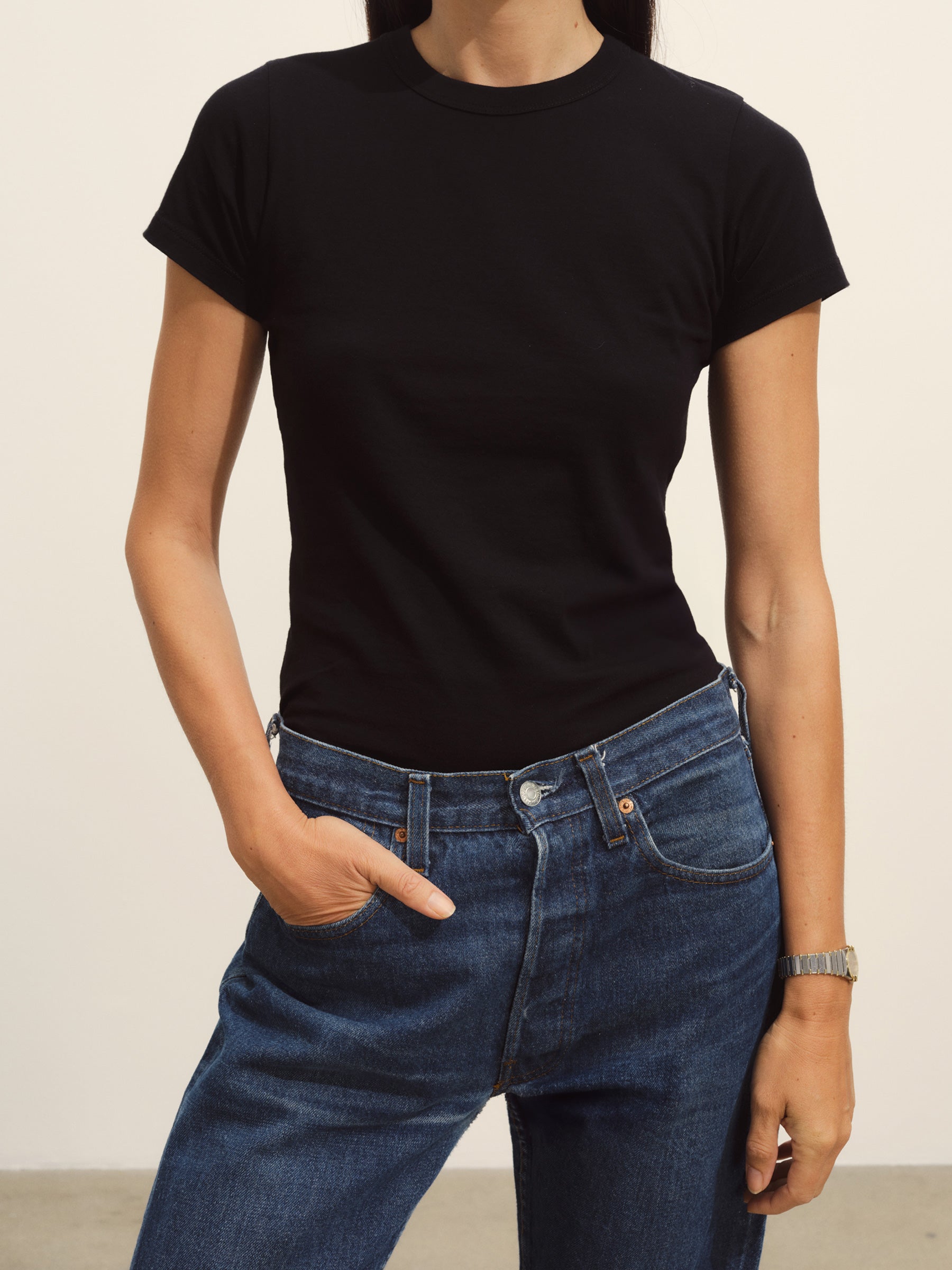 Black Pima Slim Crew