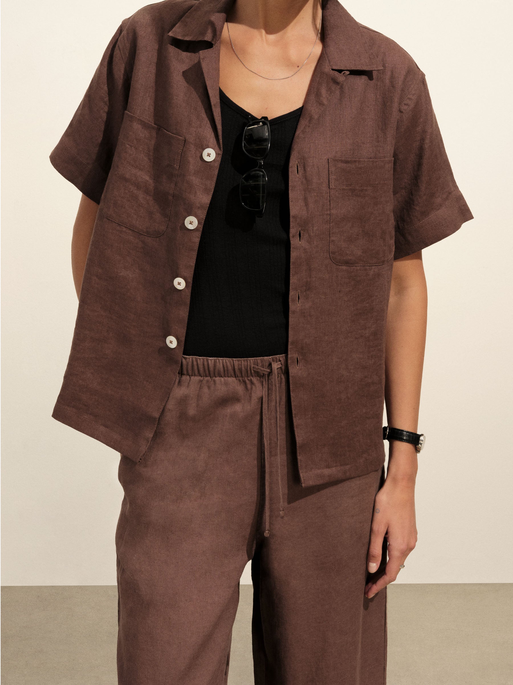 Bonfire Crosshatch Linen Camp Shirt