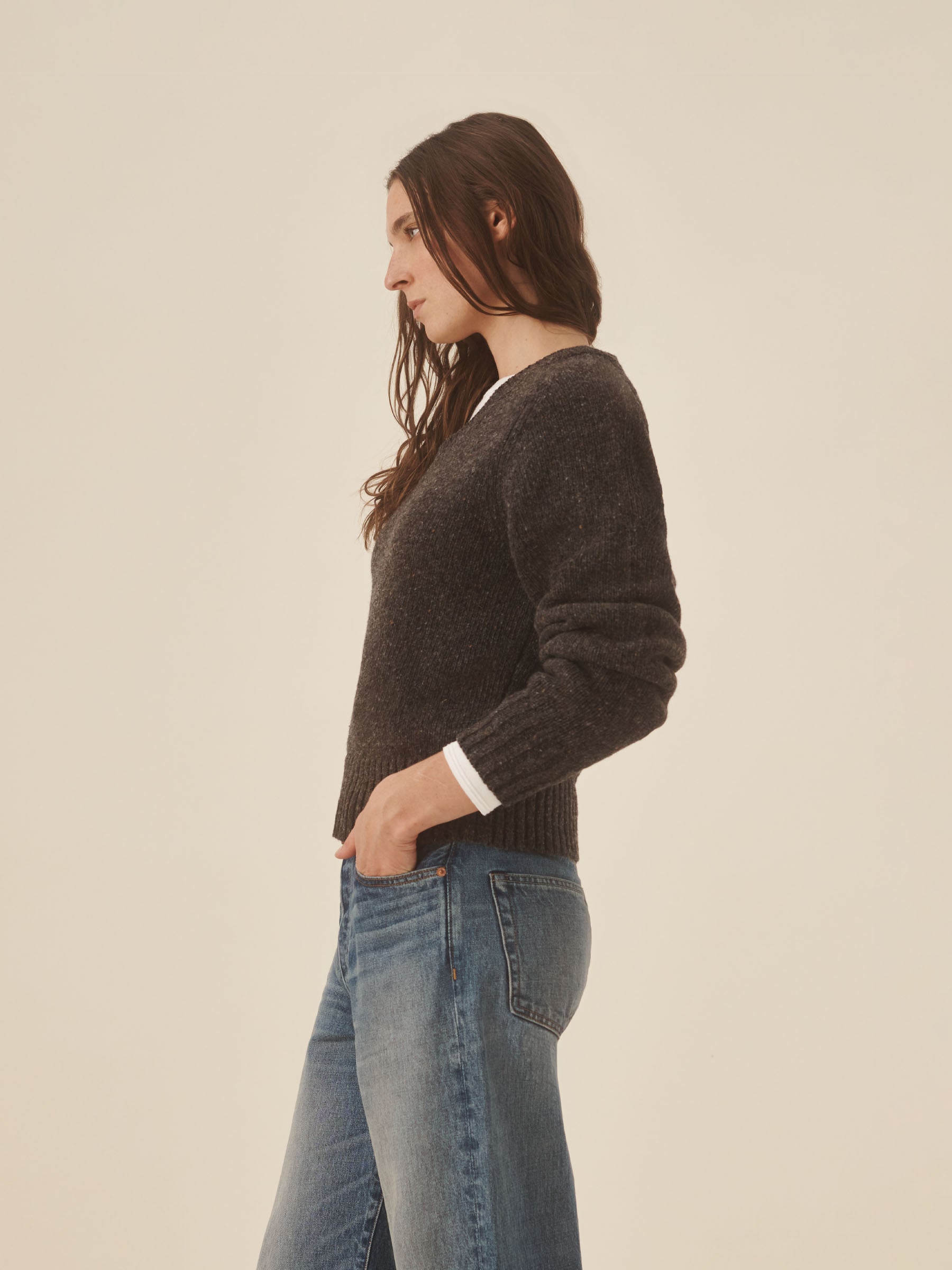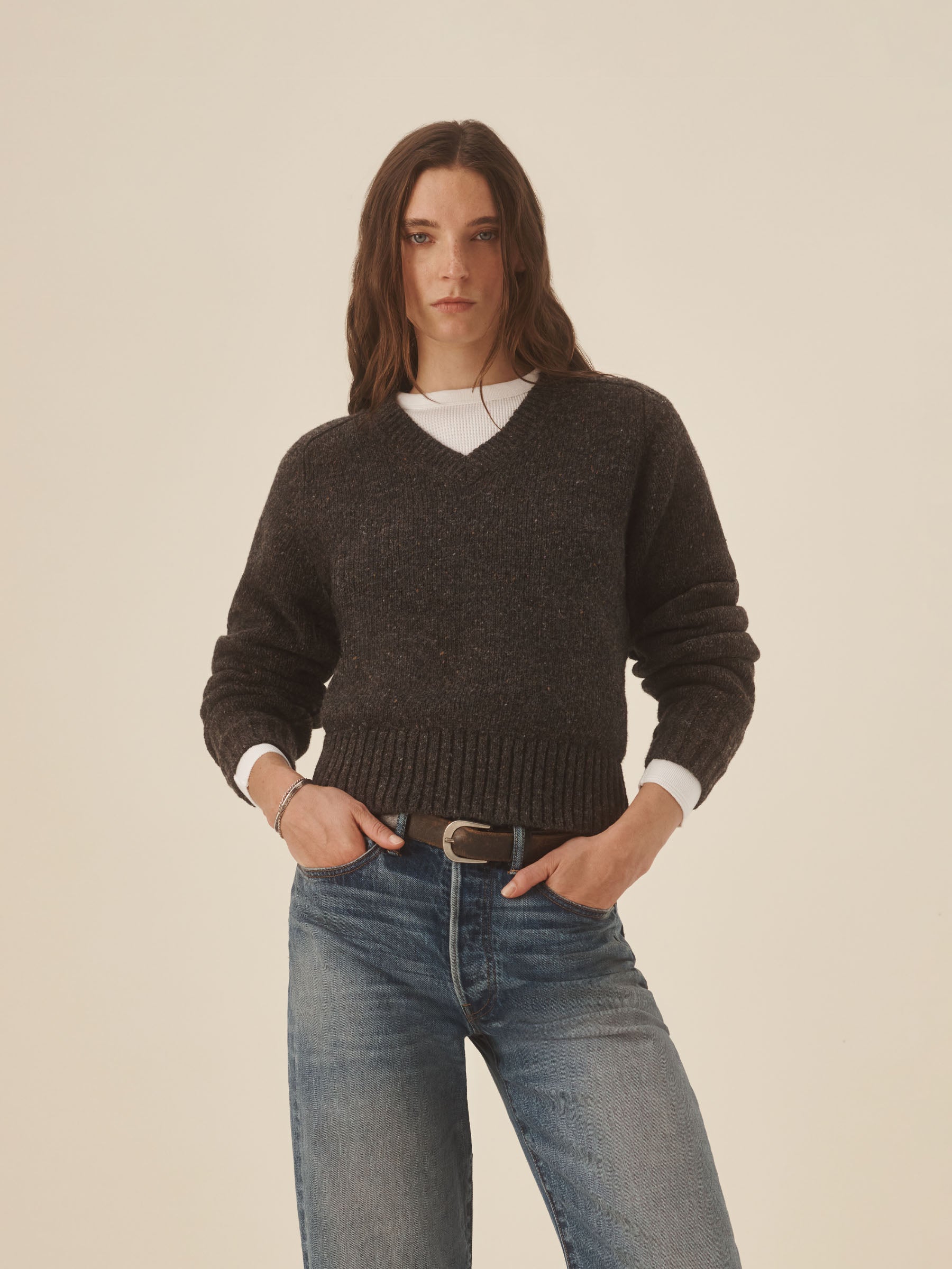 Cobblestone Seastack Wool Tweed V-Neck