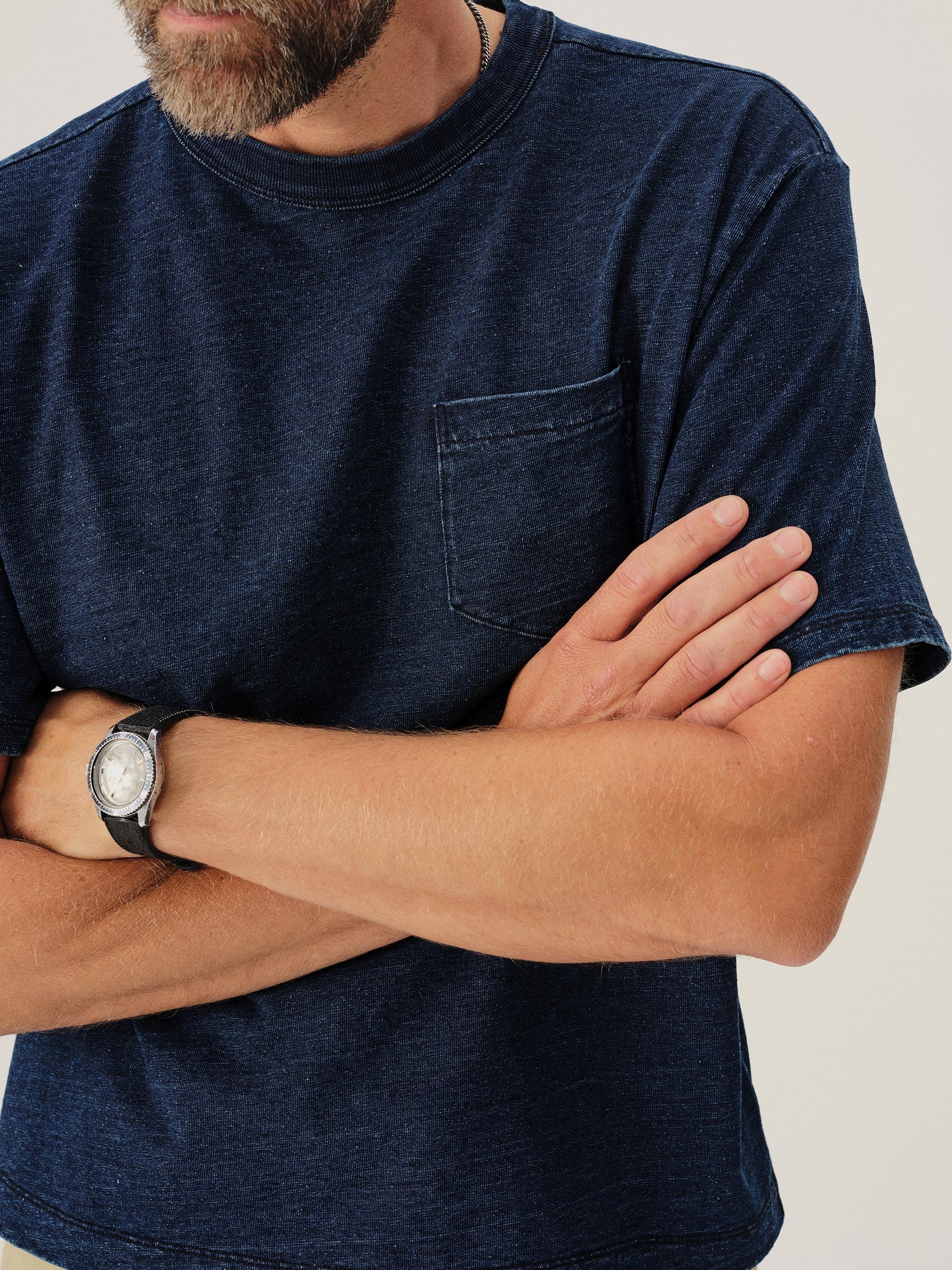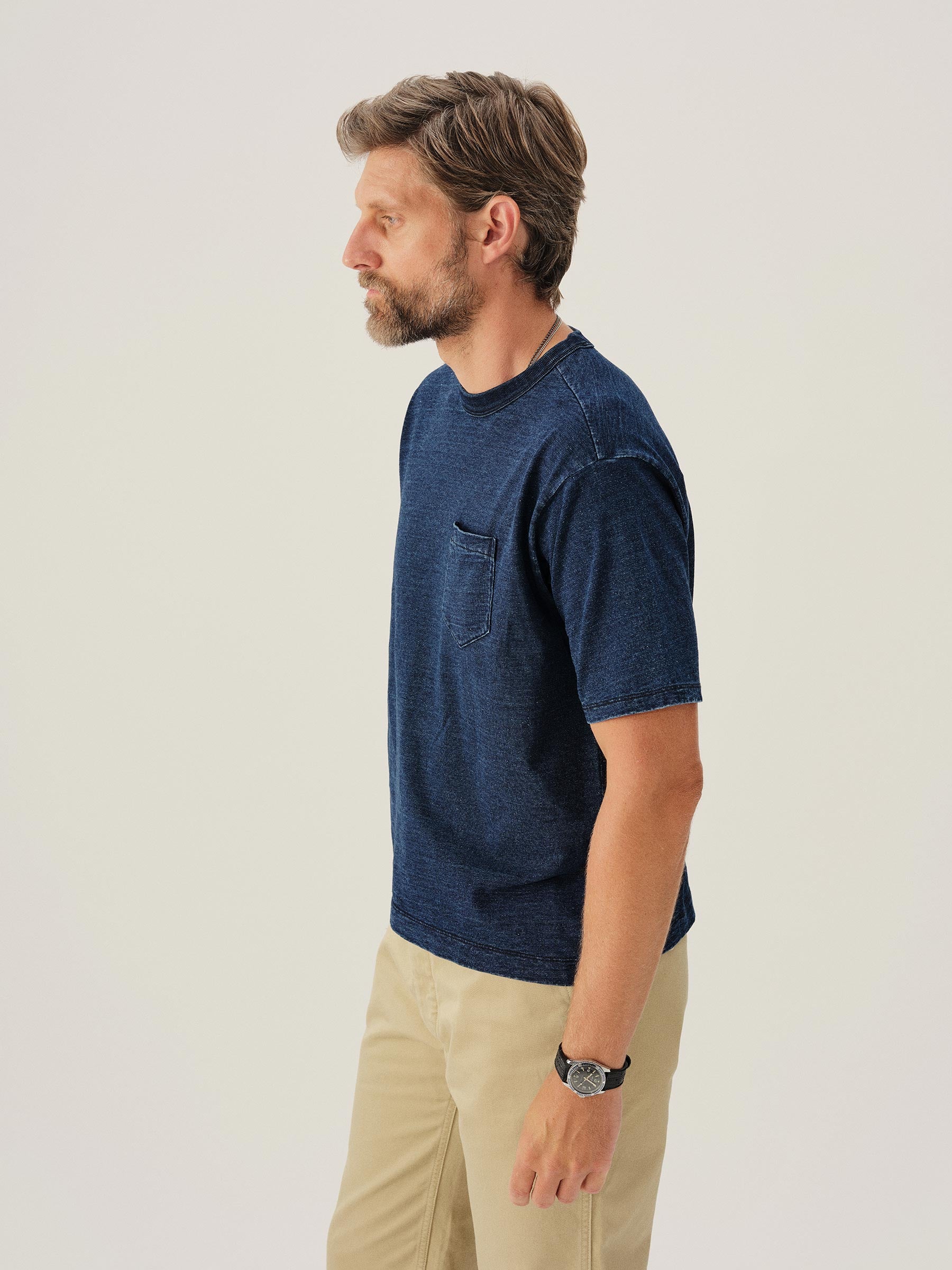 D019 Indigo-Dipped Yuma 90S Boxy Pocket Tee