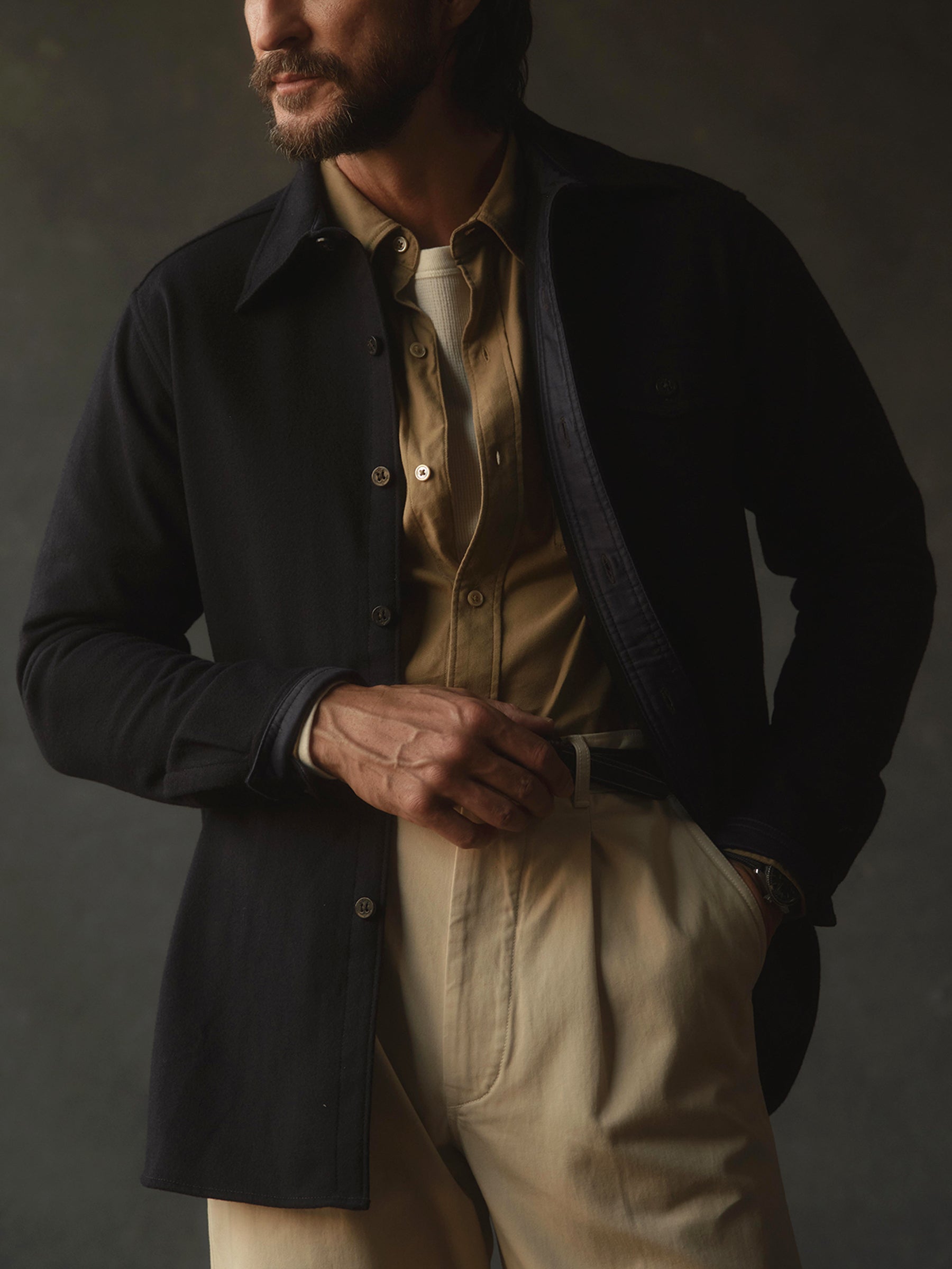 Cut for a fuller, longer fit, this overshirt is inspired by a 1930s CPO shirt from the US Navy. We upgrade the vintage look with merino wool, which is boiled to create a dense flannel with a soft hand. Period-accurate details include authentic WW2 anchor motifs at the buttons.