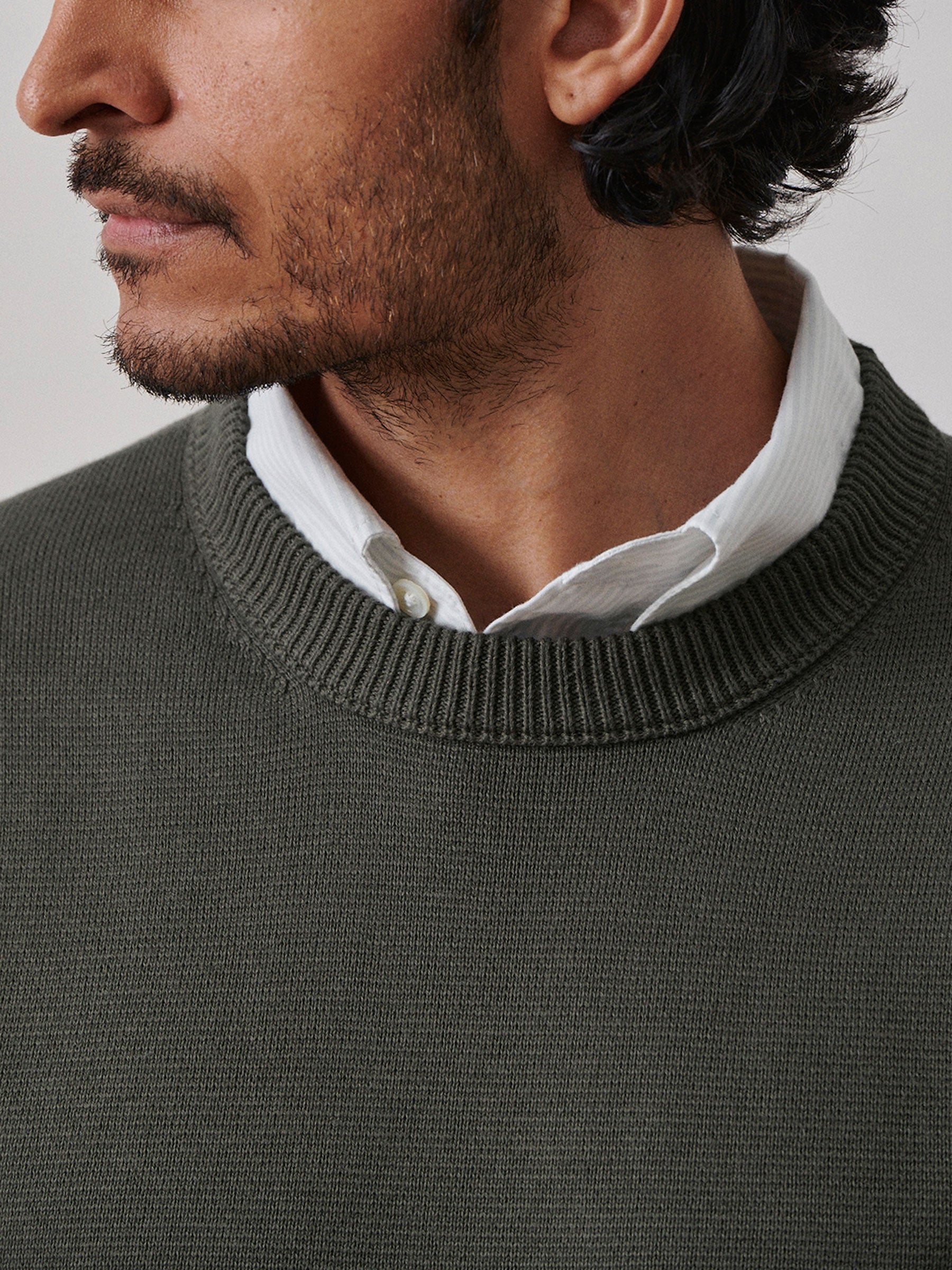Dark Olive Vintage Dyed Cotton Traveler Sweater