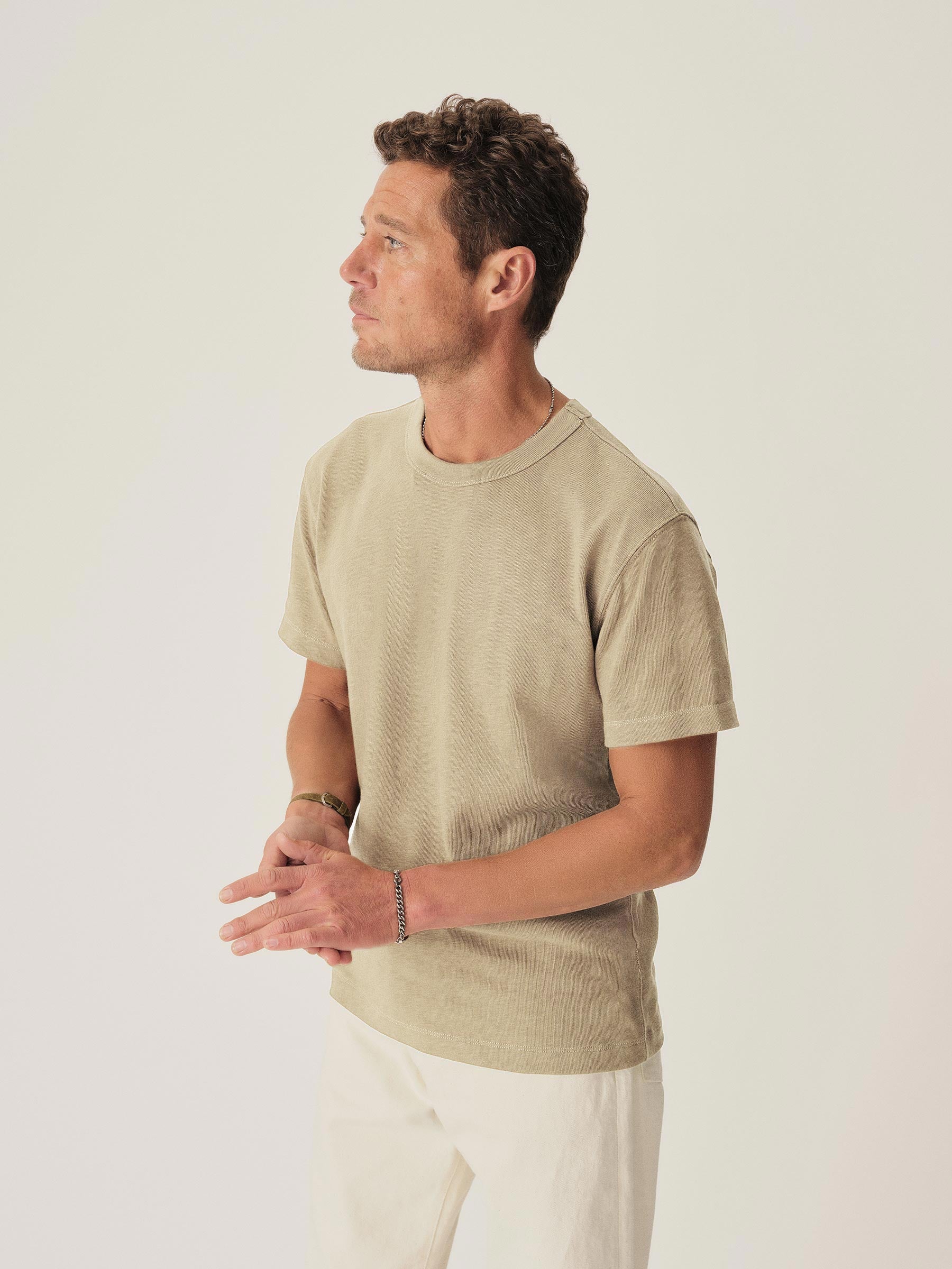 Our full-cut Field Spec Tee, built with hard-wearing, rugby-weight cotton and washed for a soft, lived-in texture.