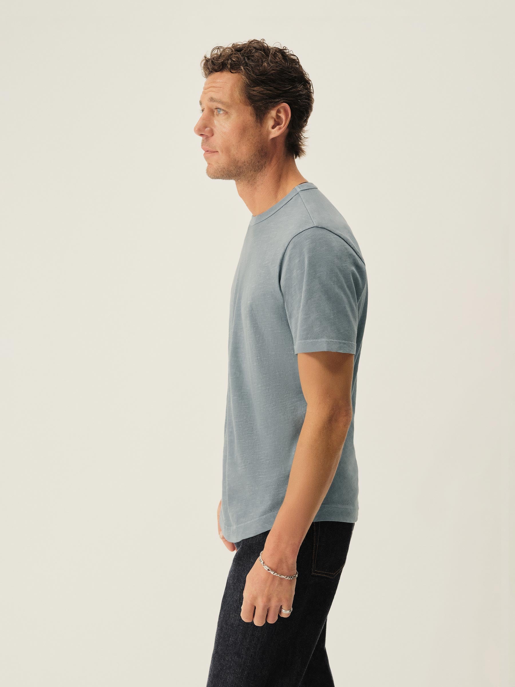 Dusk Blue Venice Wash Slub Curved Hem Tee