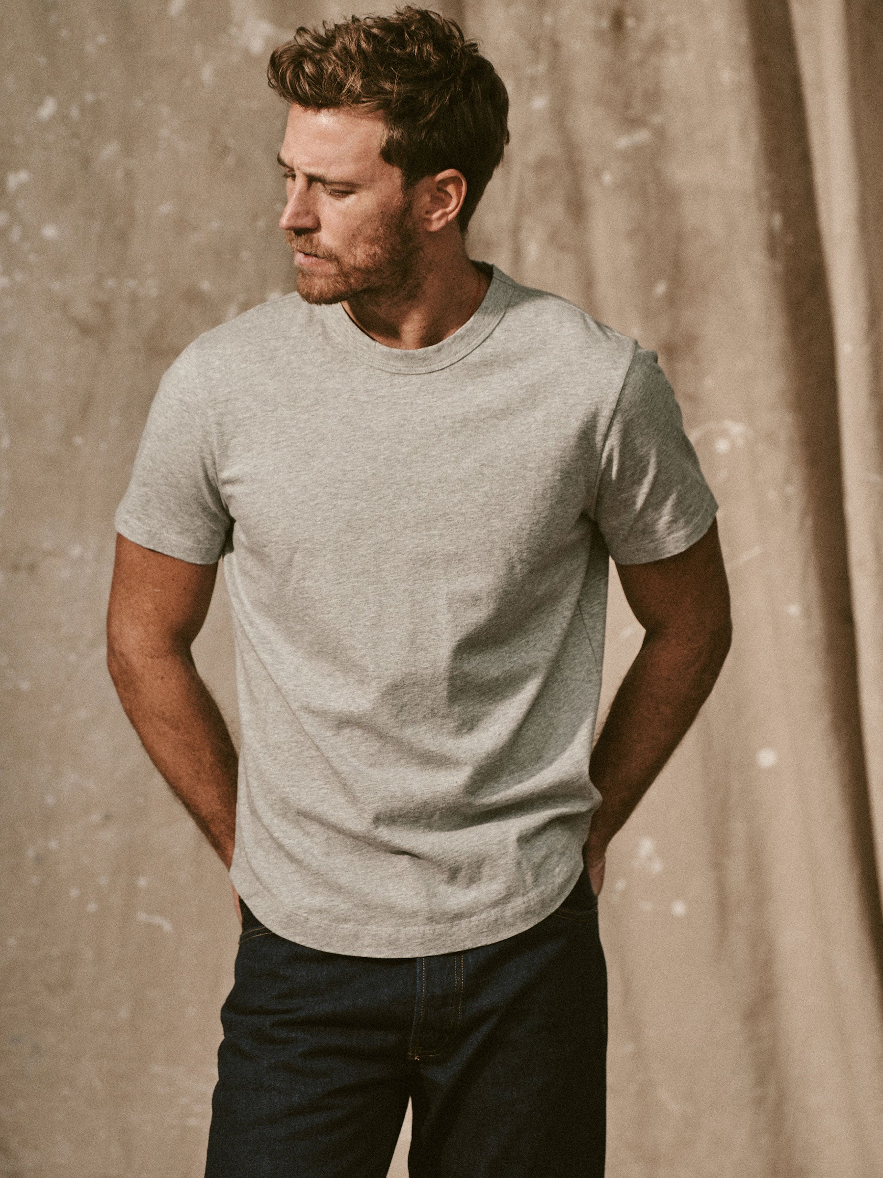Heather Grey Pima Curved Hem Tee