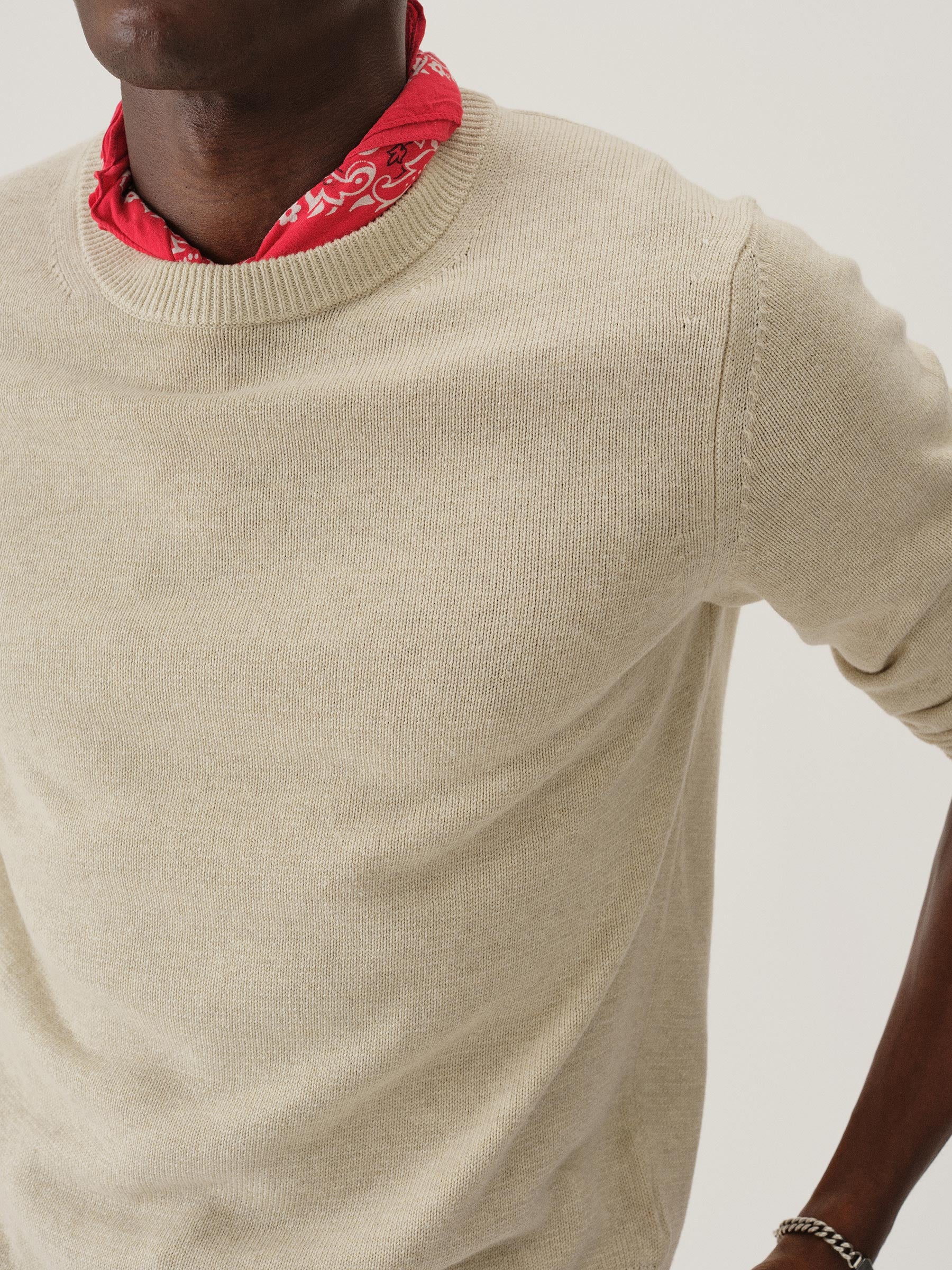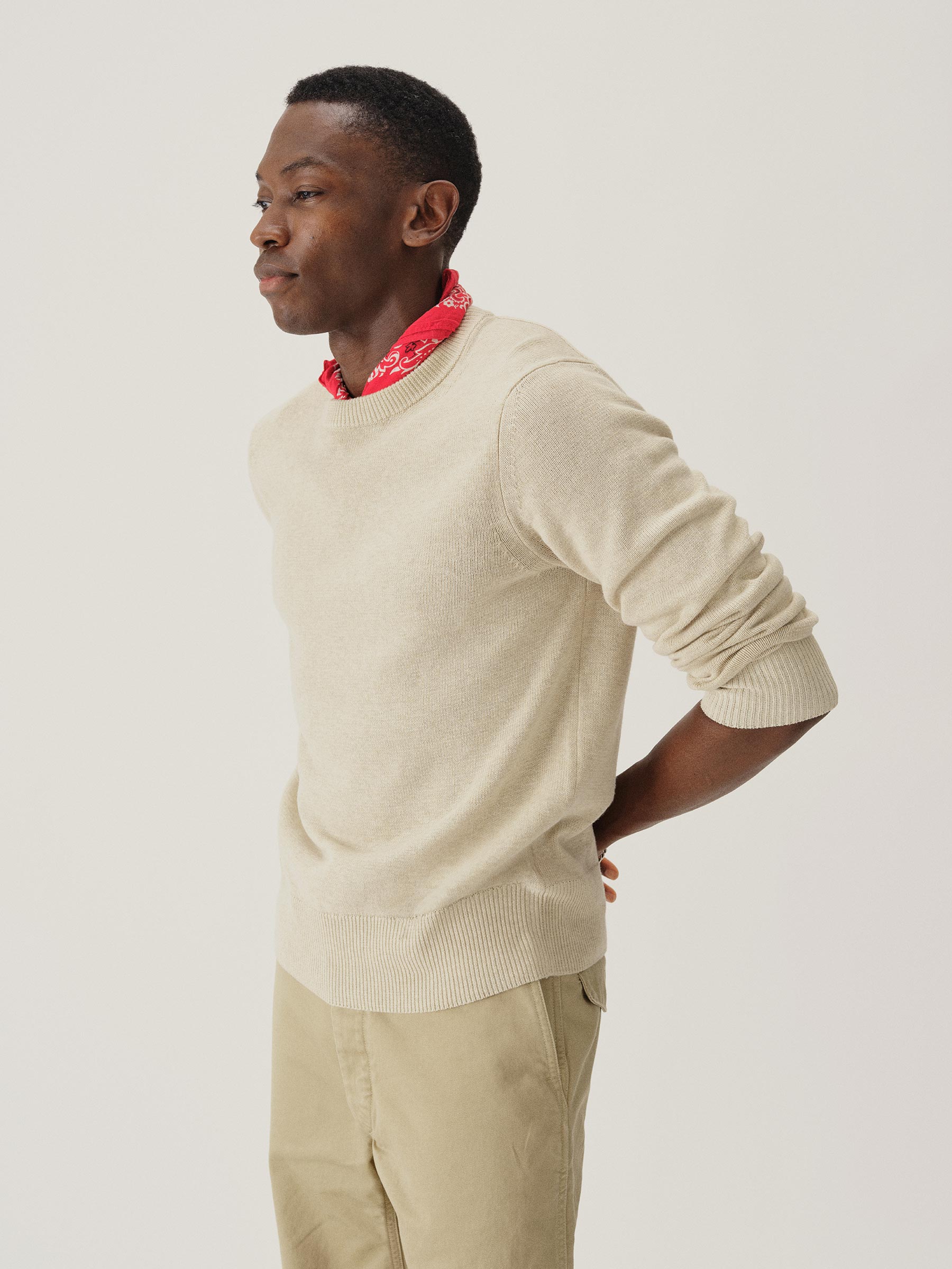 Soft, lightweight, and breathable, this crewneck sweater is spun up from a custom blend of cotton, wool, and hemp. Inspired by a midcentury crewneck sweater, it’s knit in a plaited jersey stitch with ribbing along the waist, cuffs, and neck opening. Garment dyed and washed for a lived-in feel.