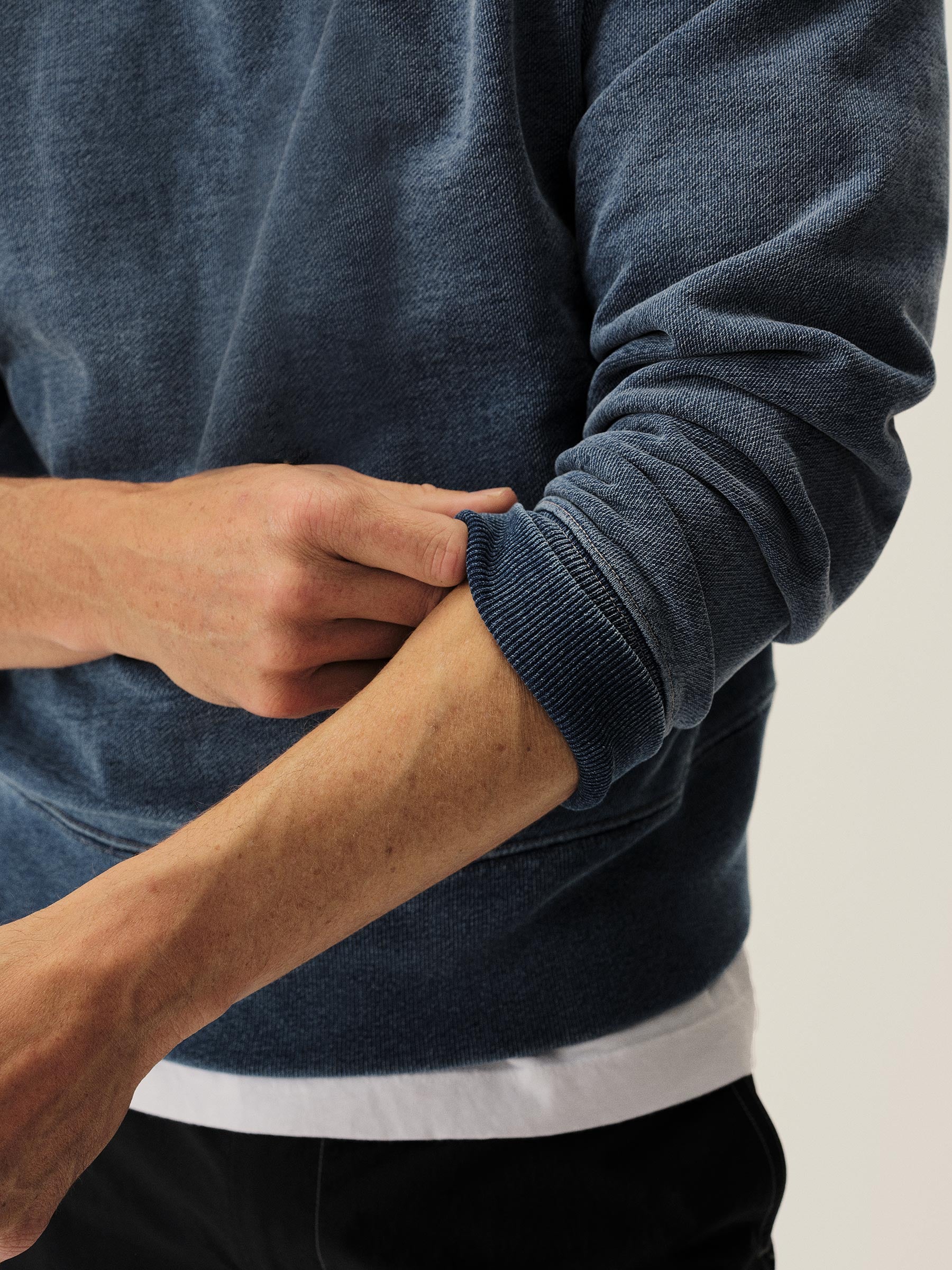 L036 Indigo-Dipped Loopback Double V Crew Sweatshirt