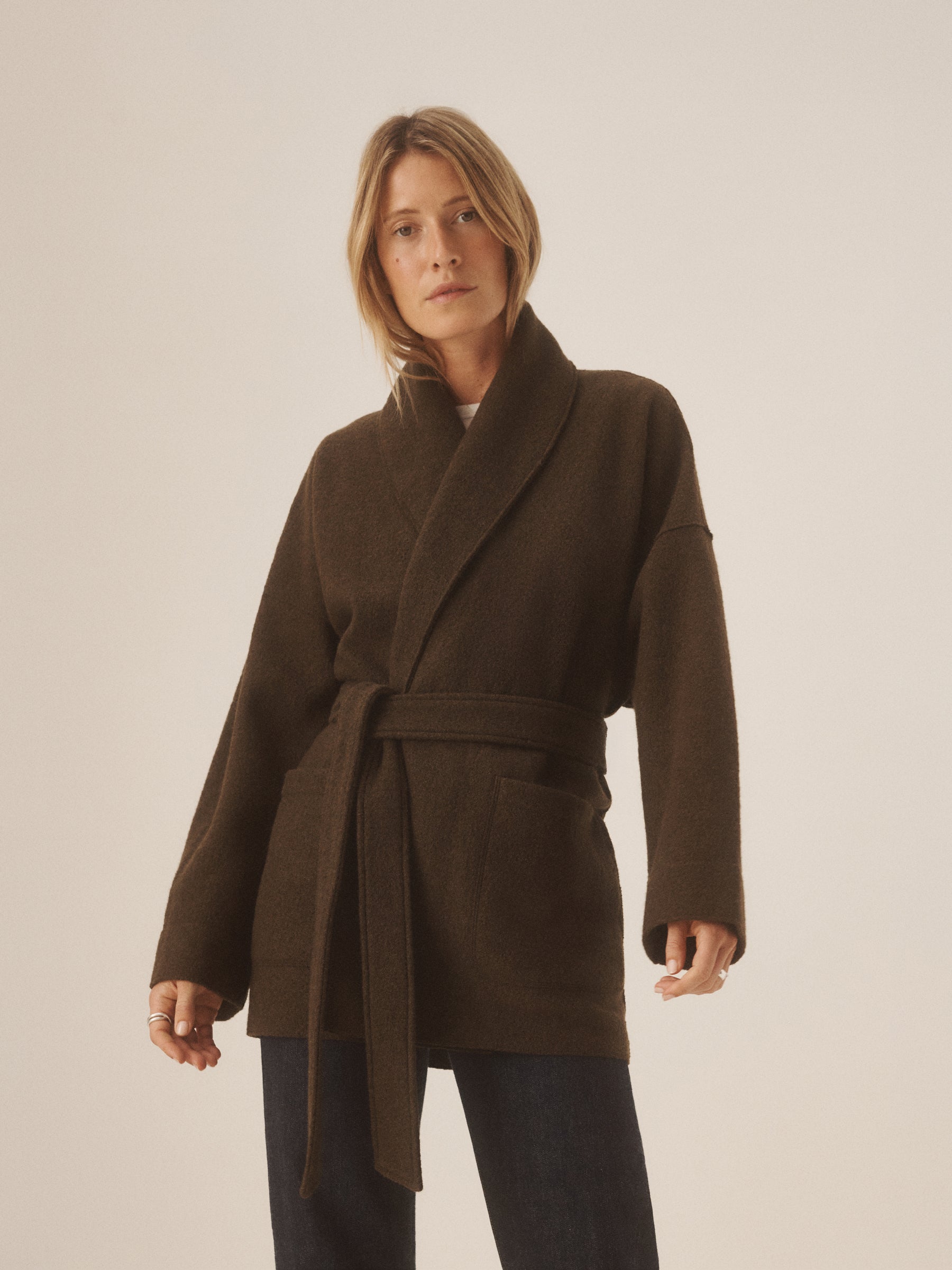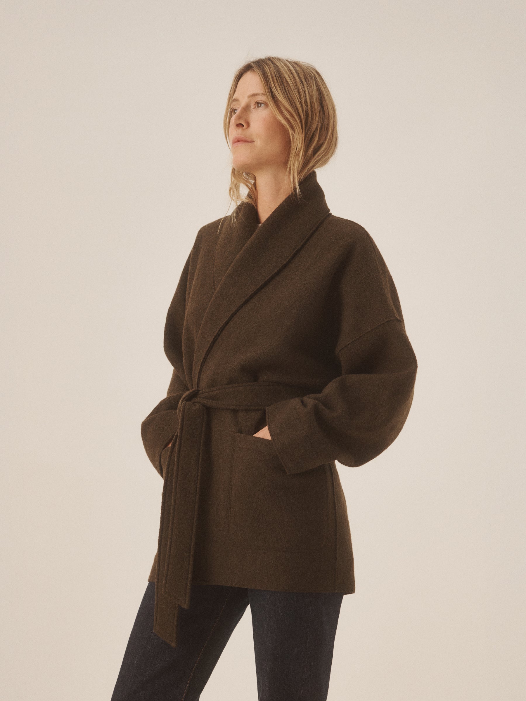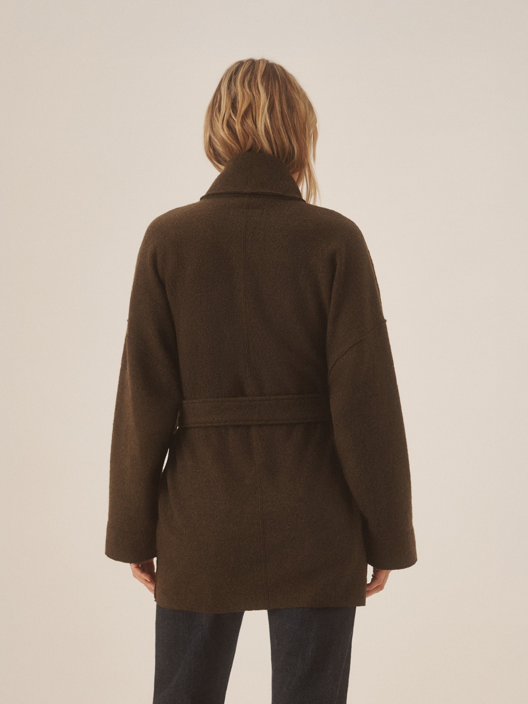 An easy layering piece that combines the warmth of a sweater with the function of a coat. Knit from merino wool yarns that are twice‑boiled into felt, it delivers insulation, breathability, and a naturally draped finish. Cut in a relaxed, throw‑on silhouette.