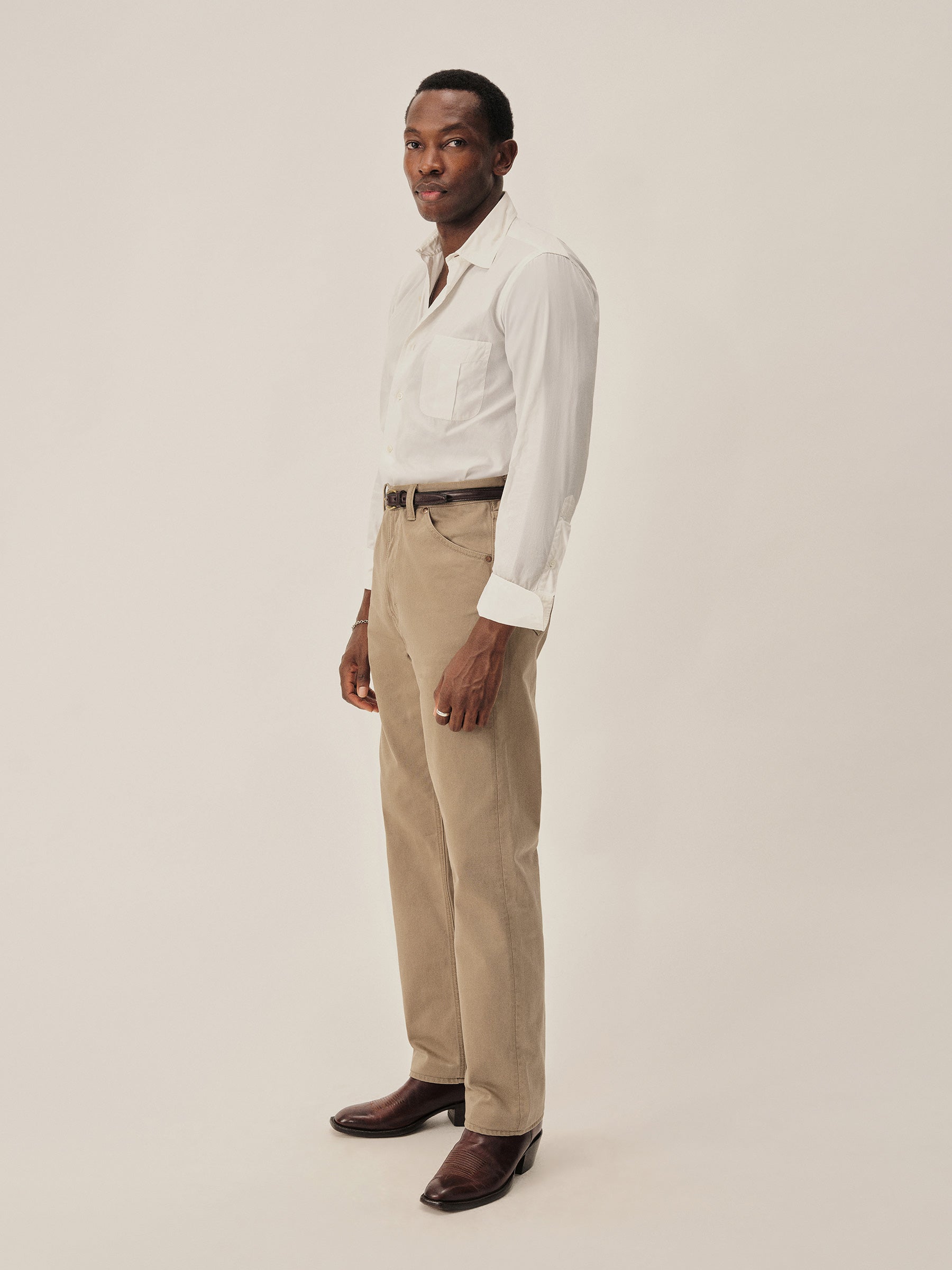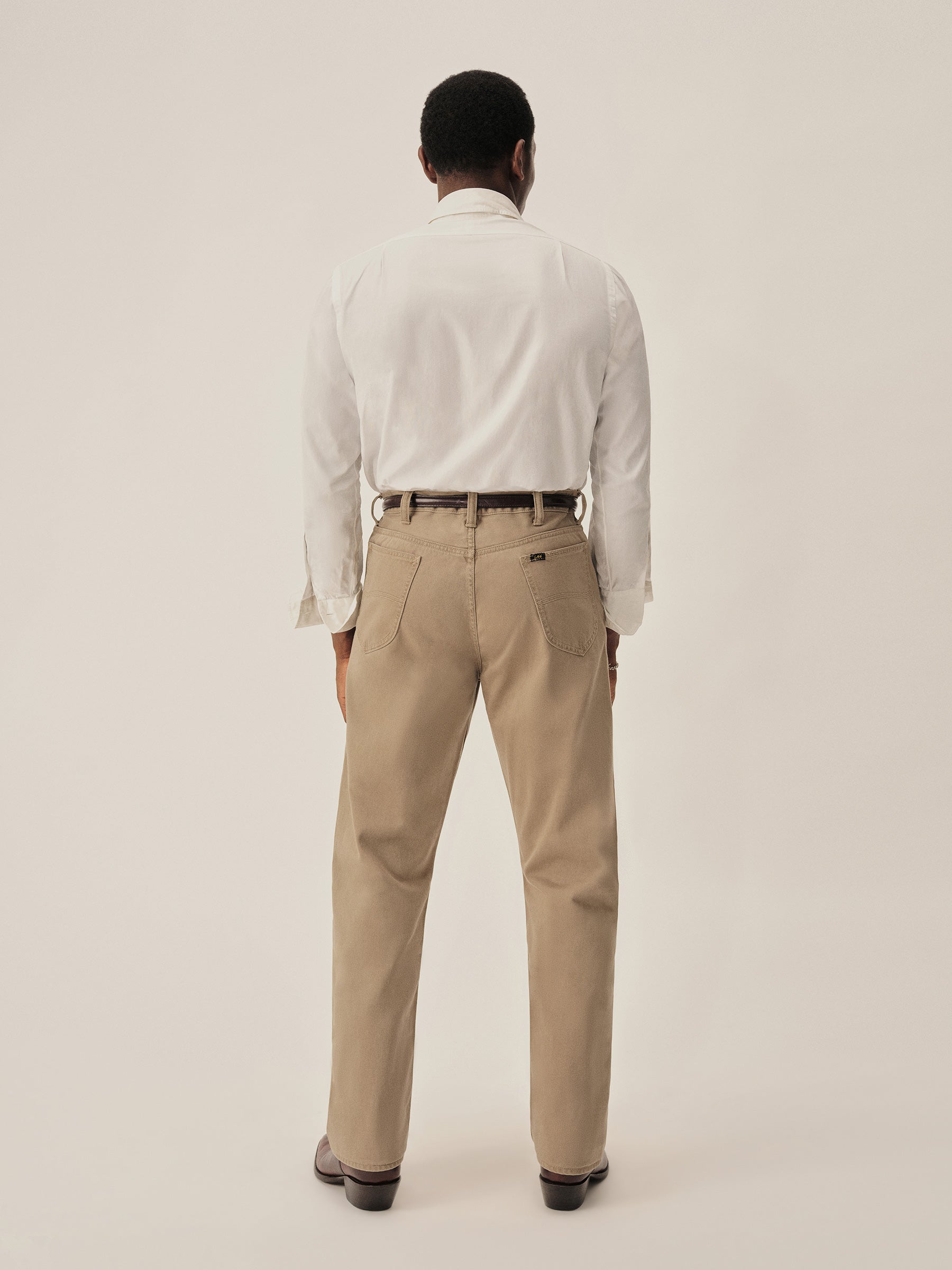 Made in collaboration with Lee, a faithful reproduction of the 1960s Westerner Jean-built in the silhouette of authentic archival pieces and cut from 11.5 oz. Japanese cotton sateen. Designed with a high rise and tailored leg, and finished with a brass Talon 42 zipper, reproduction Lee tack buttons, copper rivets, and the original Lee “Lazy S” stitch at the back pockets. Stone washed for a broken-in feel.