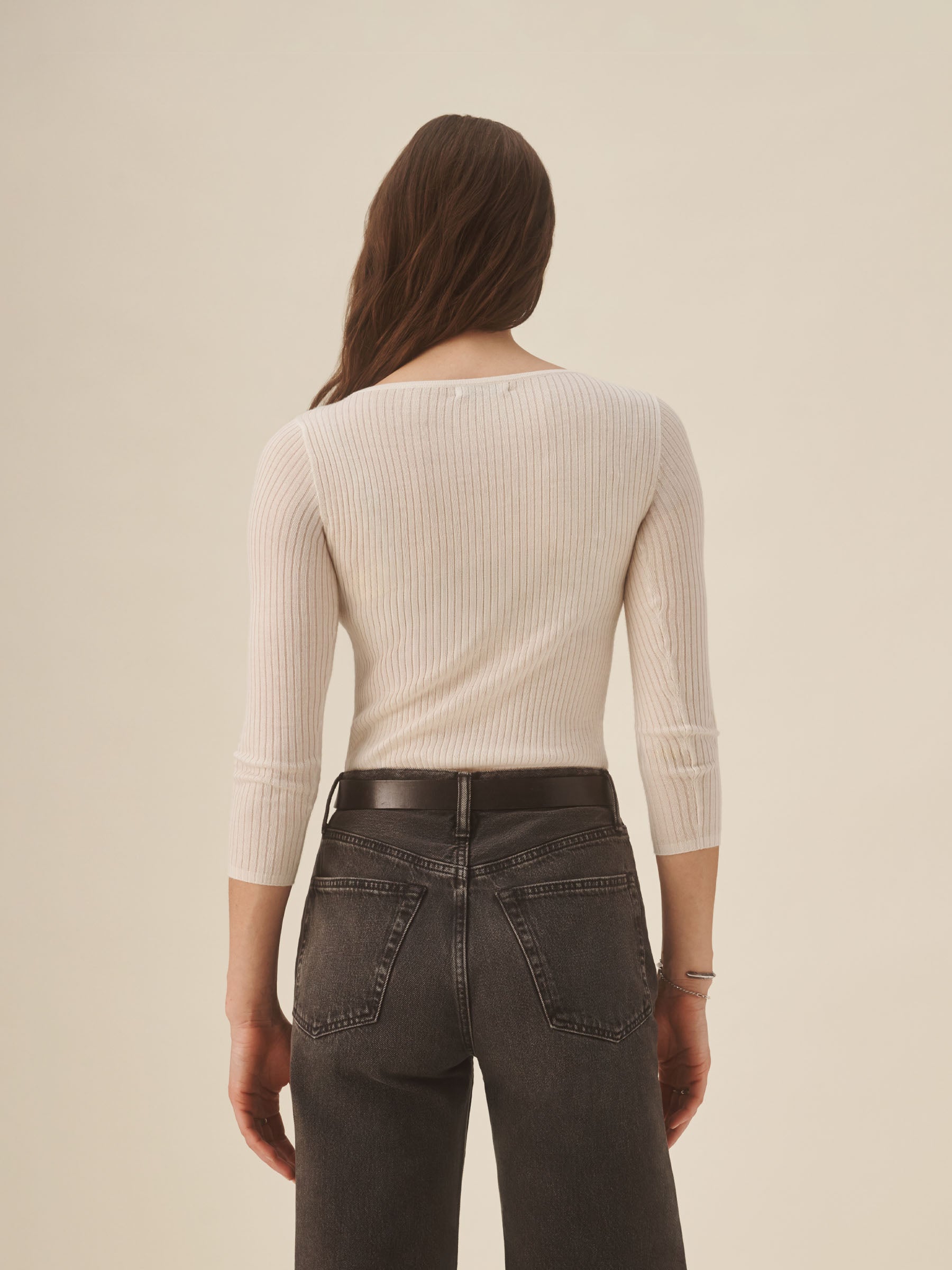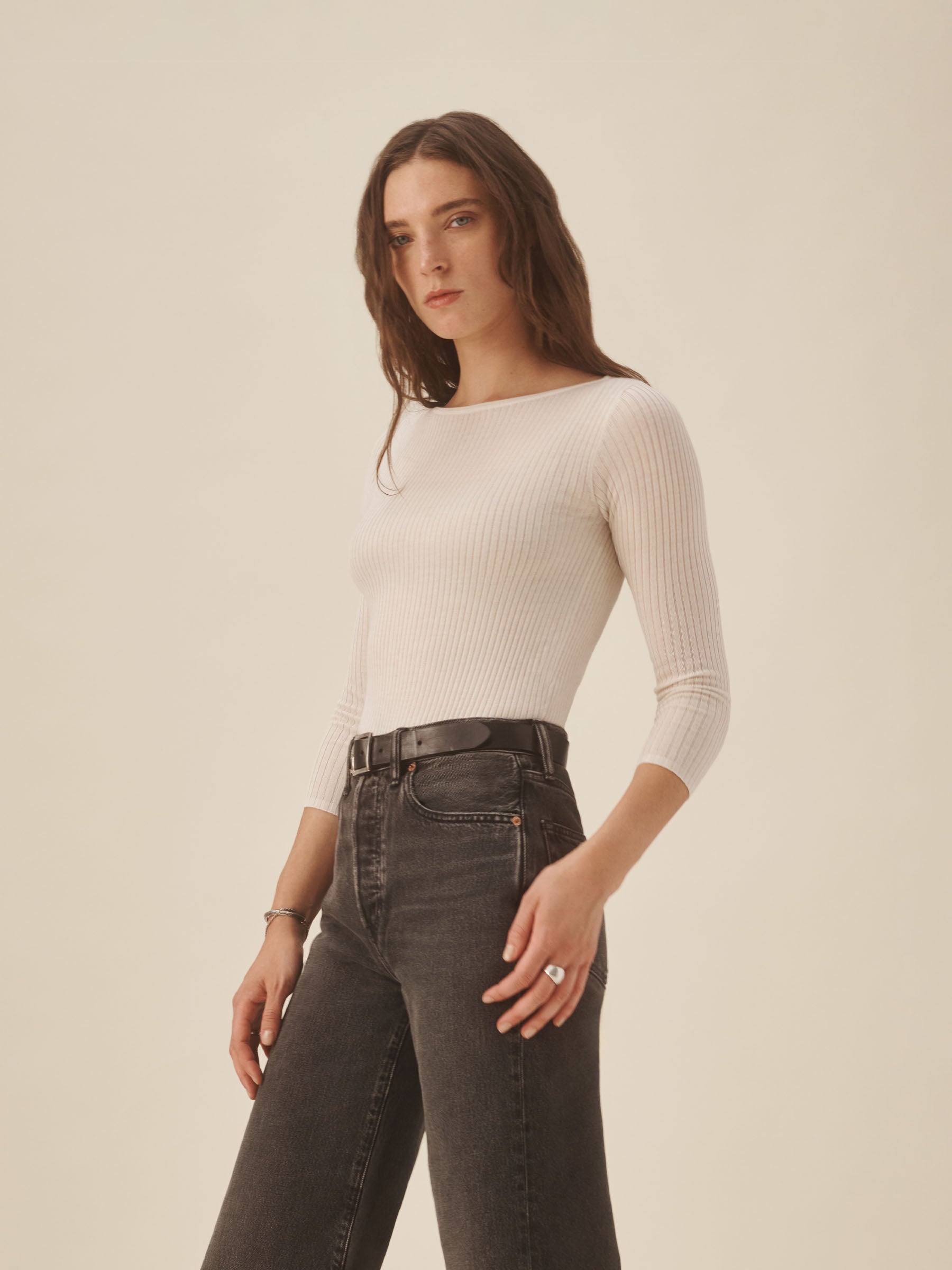 A fine-gauge knit inspired by vintage French bateau-neck tops from the ’50s and ’60s. Made from yarn-dyed 4×2 rib in a warm blend of merino, silk, and cashmere, it’s cut slim with a wide neckline and designed for easy layering.