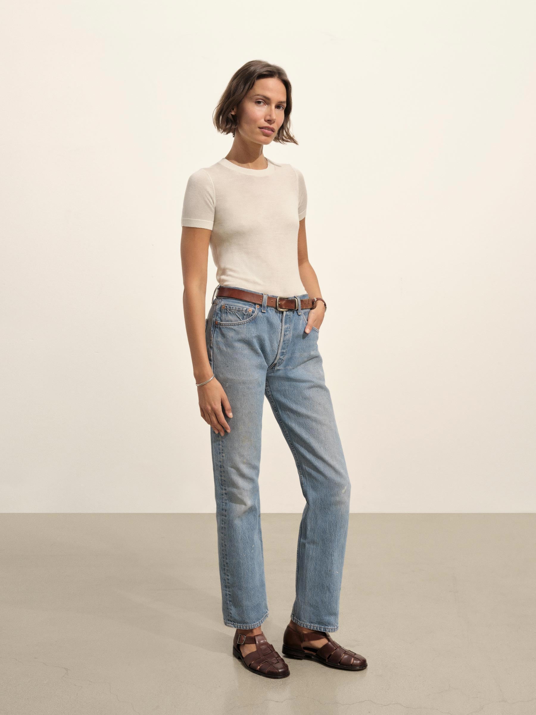 Natural Featherweight Silk Cashmere Tee