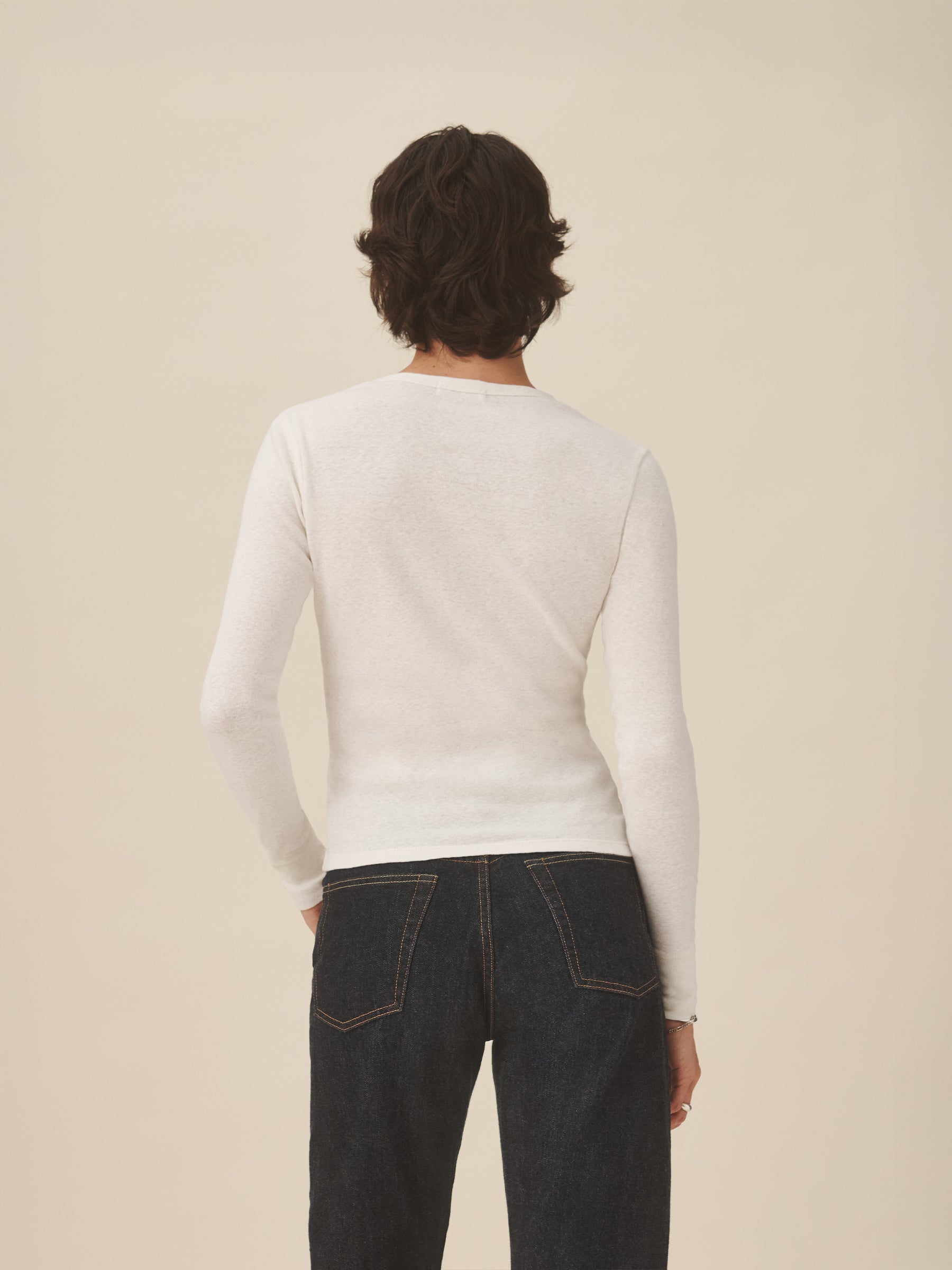 Crafted from a superfine, exceptionally soft cotton rib, this long sleeve is a go-to for effortless wear. It has a slim fit, a wide crewneck, cuffs, and a hip-length hem. Garment dyed and washed with softener for a lived-in feel.