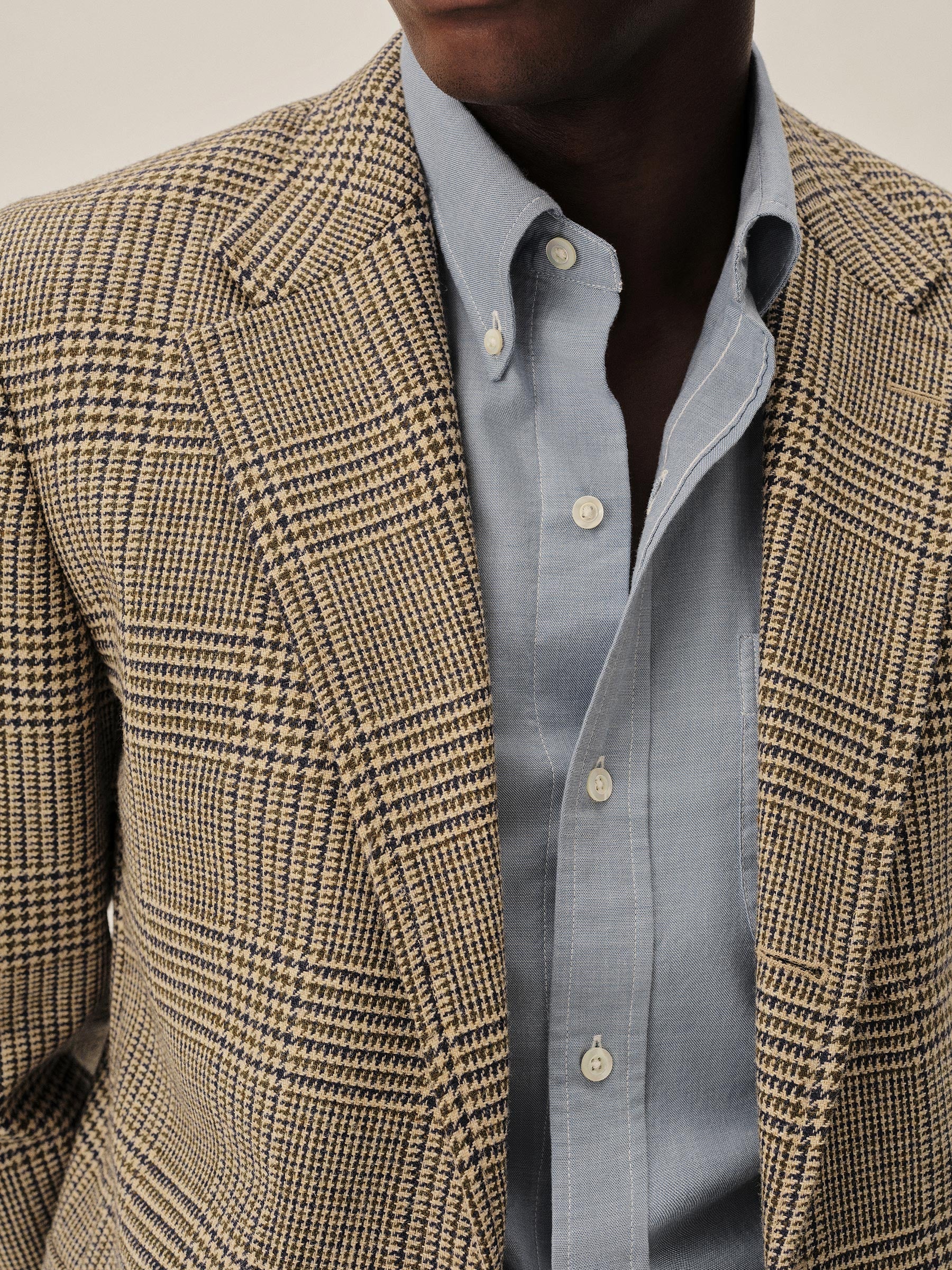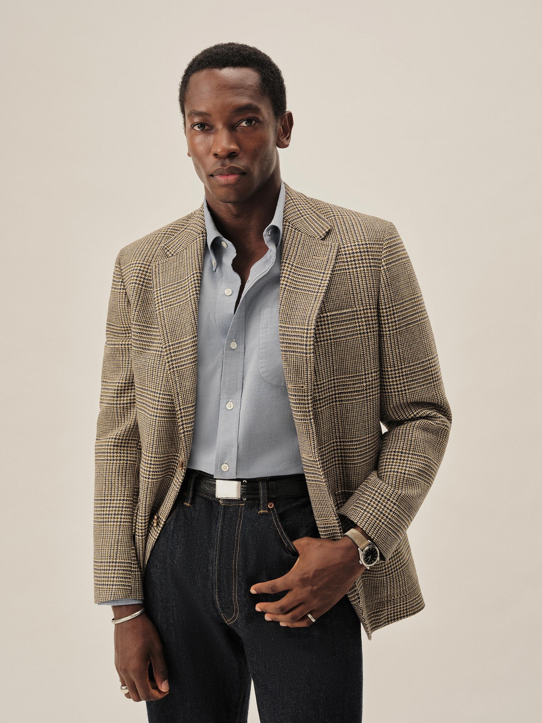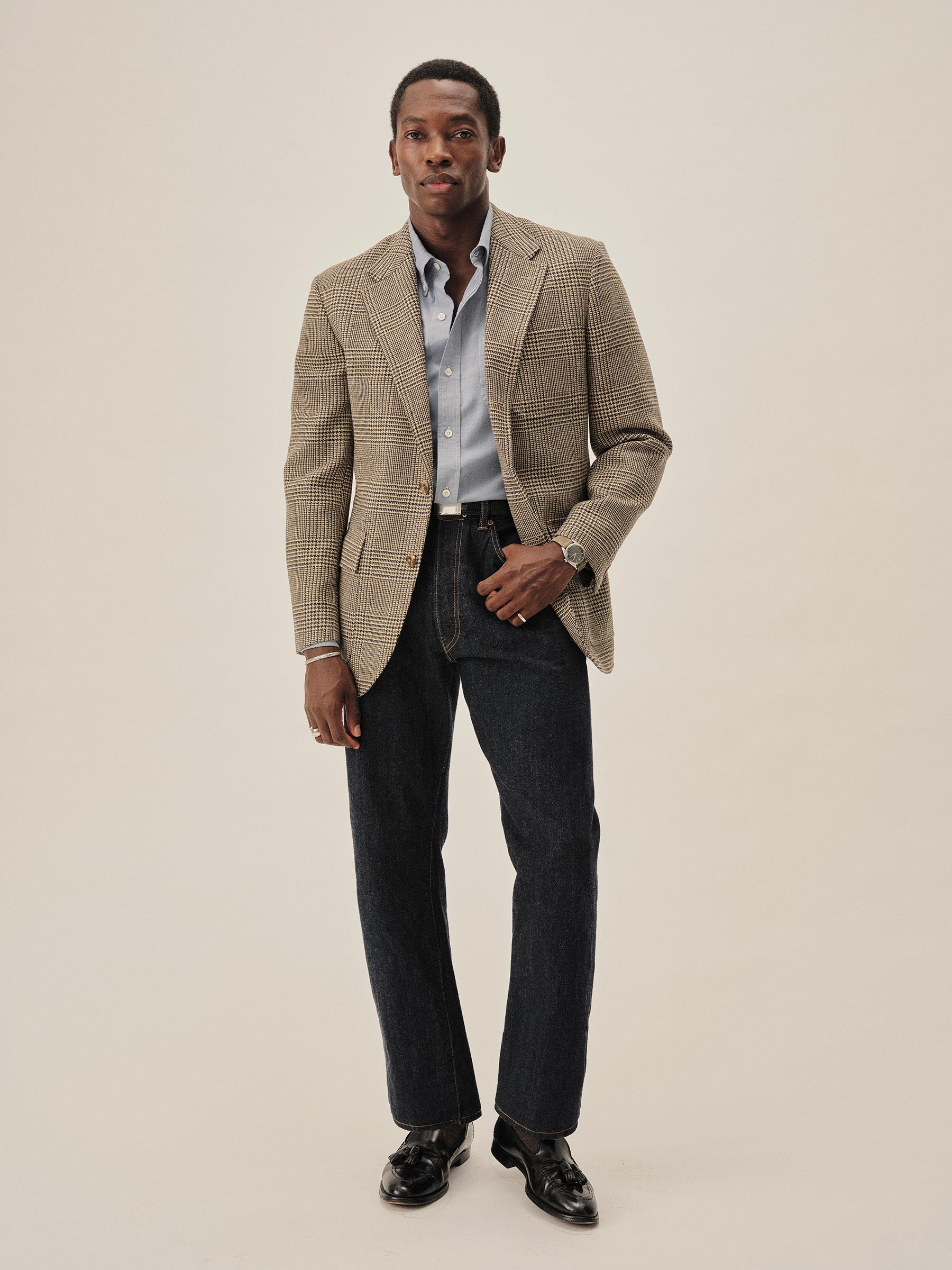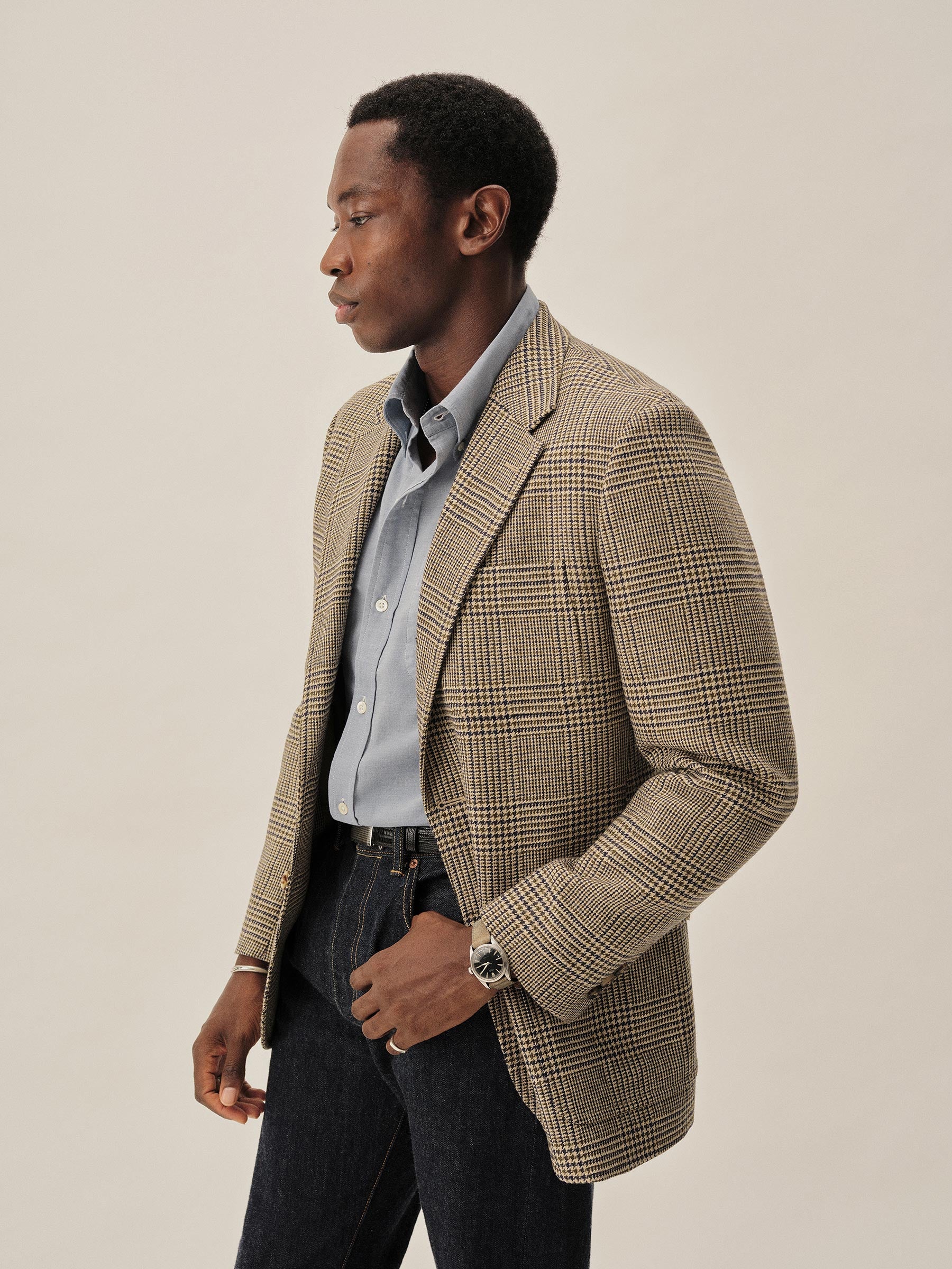 An Ivy-inspired American blazer cut from Fox Brothers’ yarn-dyed lambswool twill. Designed with a chest patch pocket, patch and flap hip pockets, and a center back vent. Details include half back lining, interior welt pockets, lined patch pockets, 3-roll-2 lapel, 5/16″ topstitching, and horn buttons.