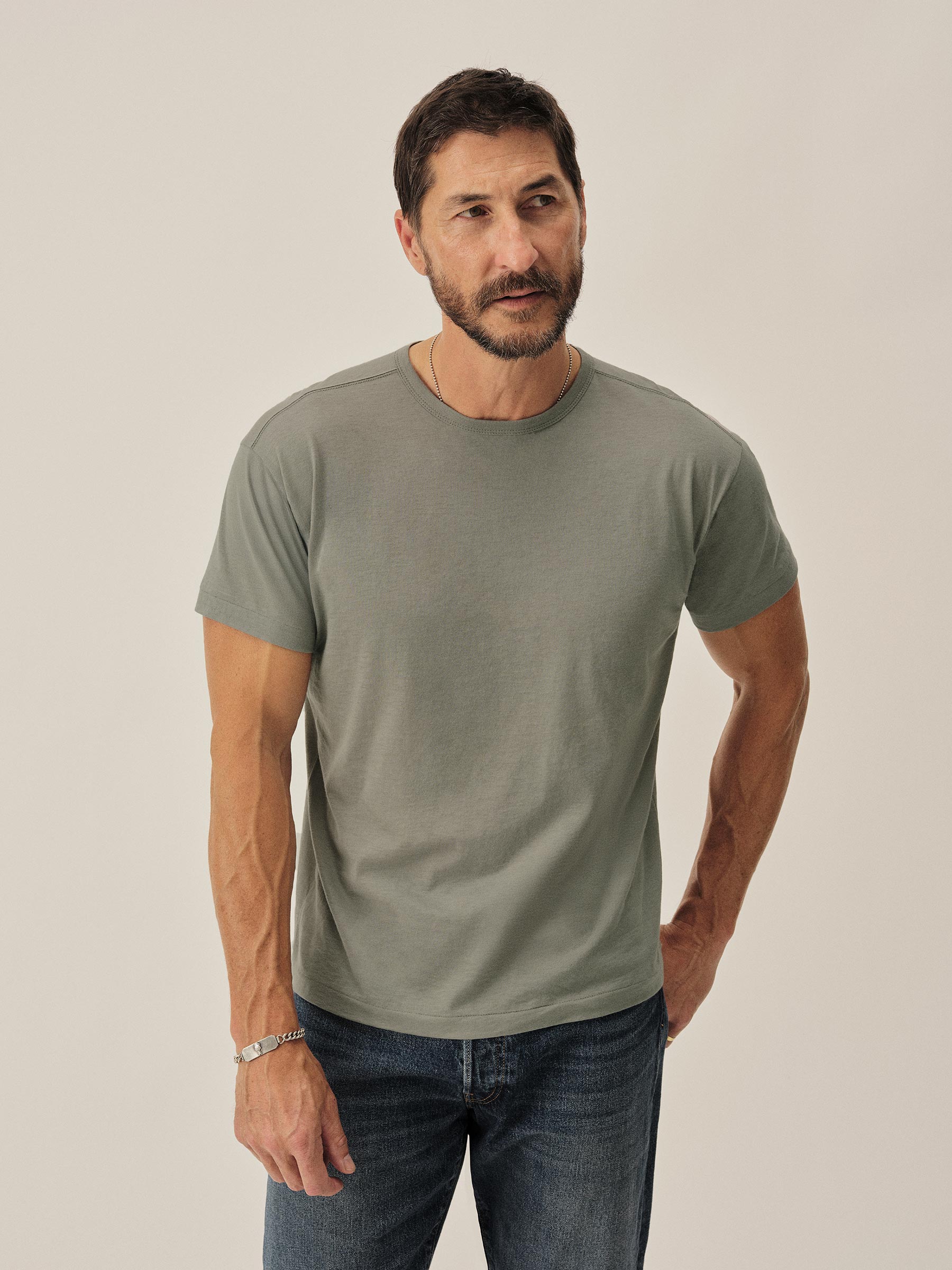 A classic tee knit in Japan from a blend of cotton and cashmere – delivering a refined, ultra-lightweight feel at just 100 GSM. Piece-dyed for rich color. Designed with a slightly longer in length and fuller in the chest for a relaxed, easy fit.