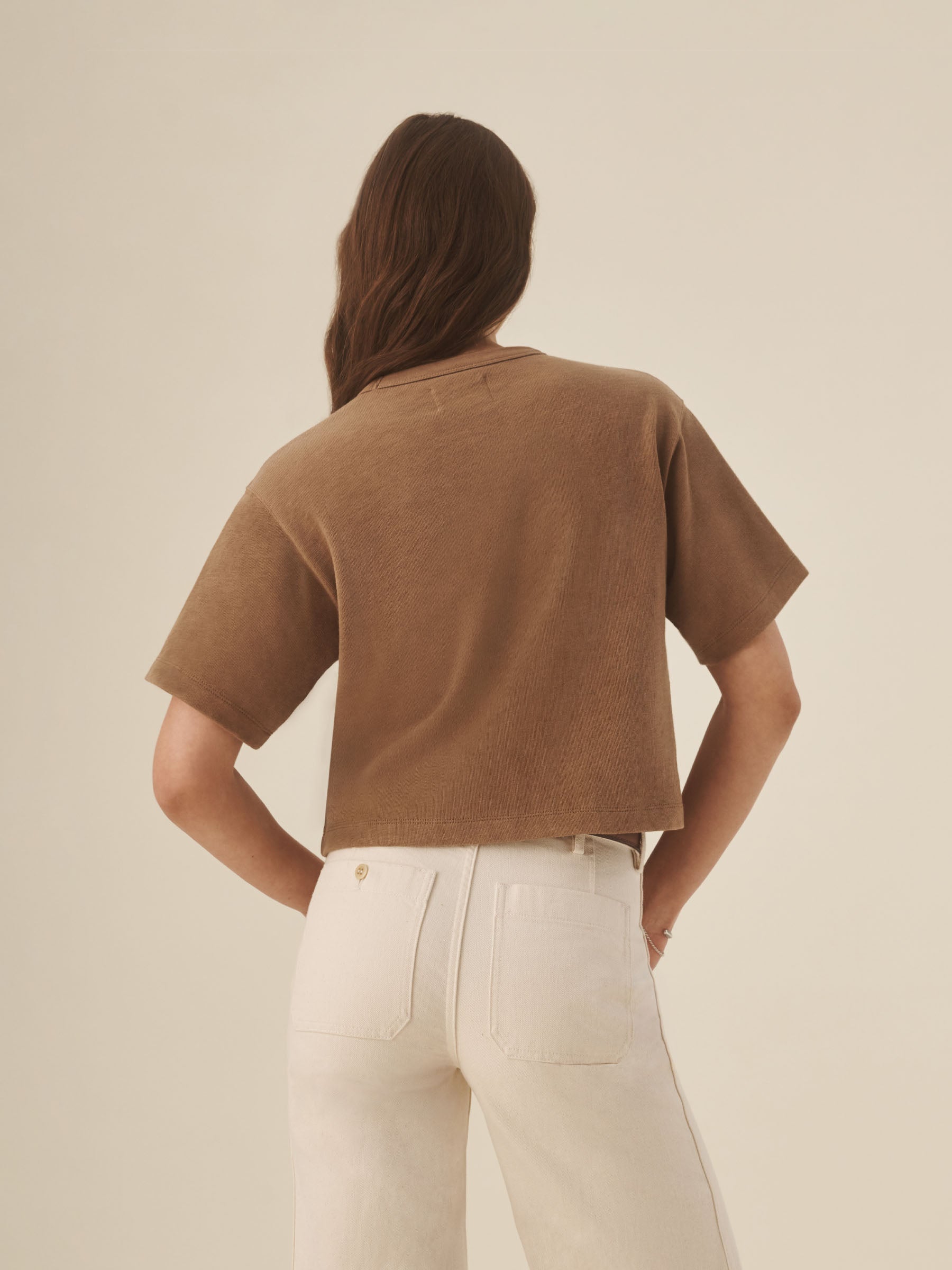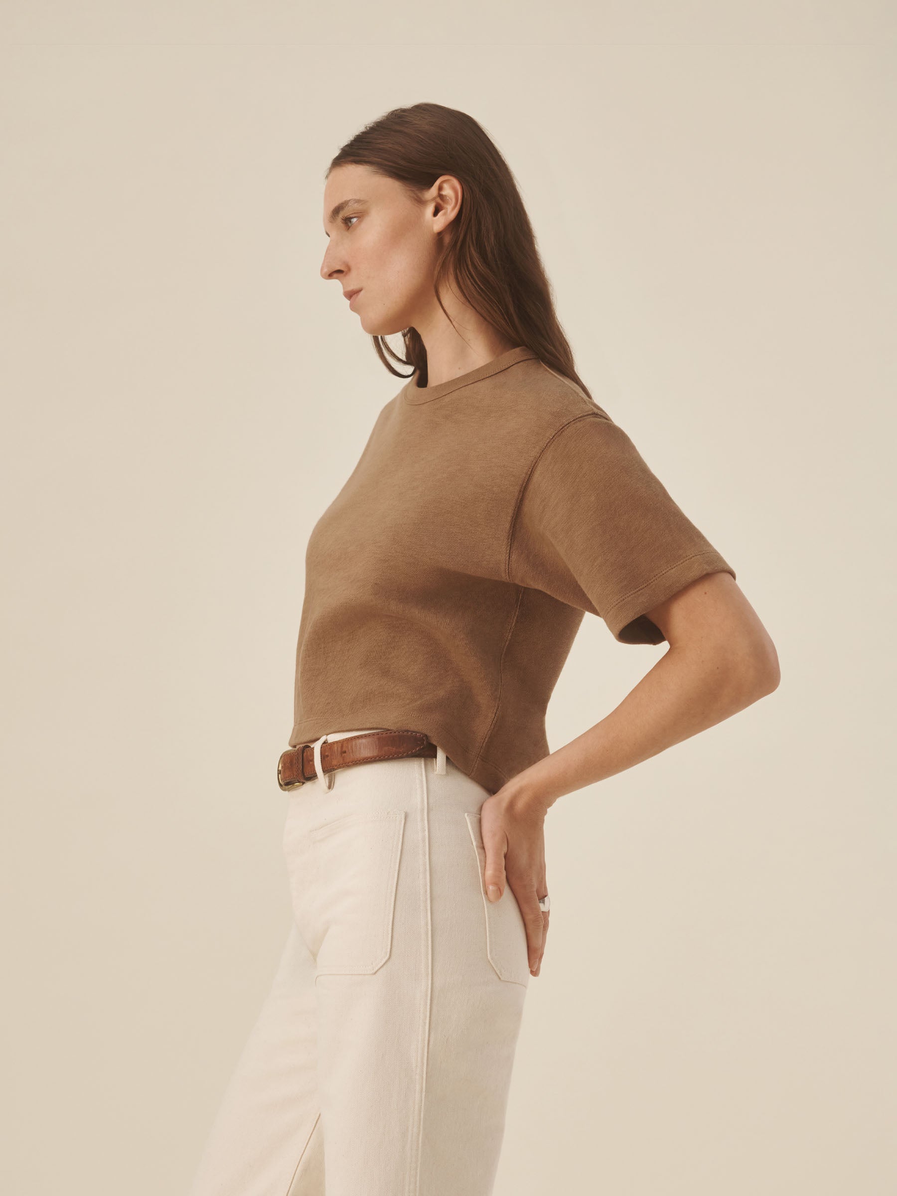 Cut from a heavyweight 310 GSM cotton, this slightly oversized, boxy crewneck tee has a straight hemline that hits right at your natural waist. Double-washed for a soft, smooth texture and consistent fit.