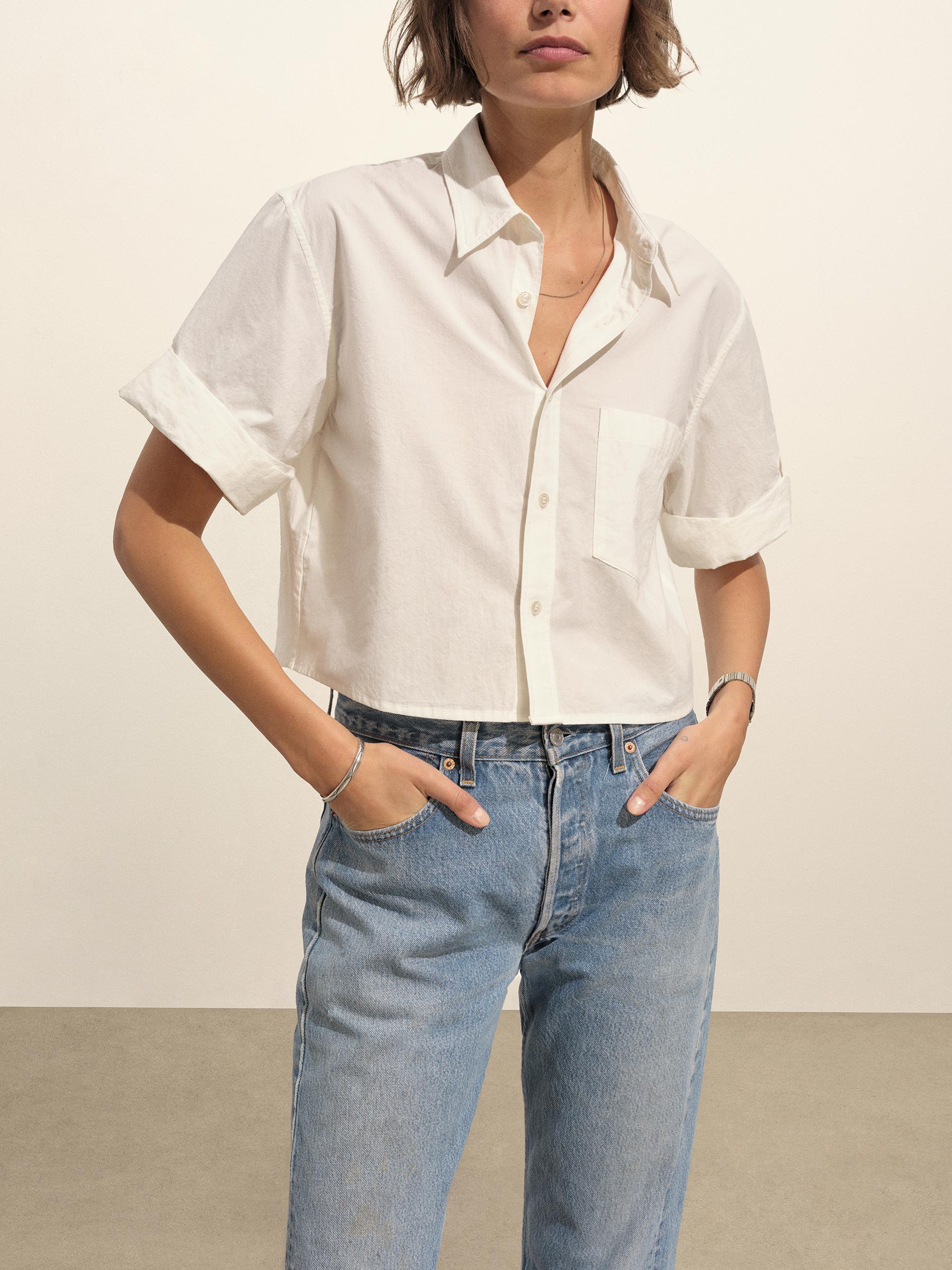 White Mainstay Cotton Cut-Off Short Sleeve Button Down