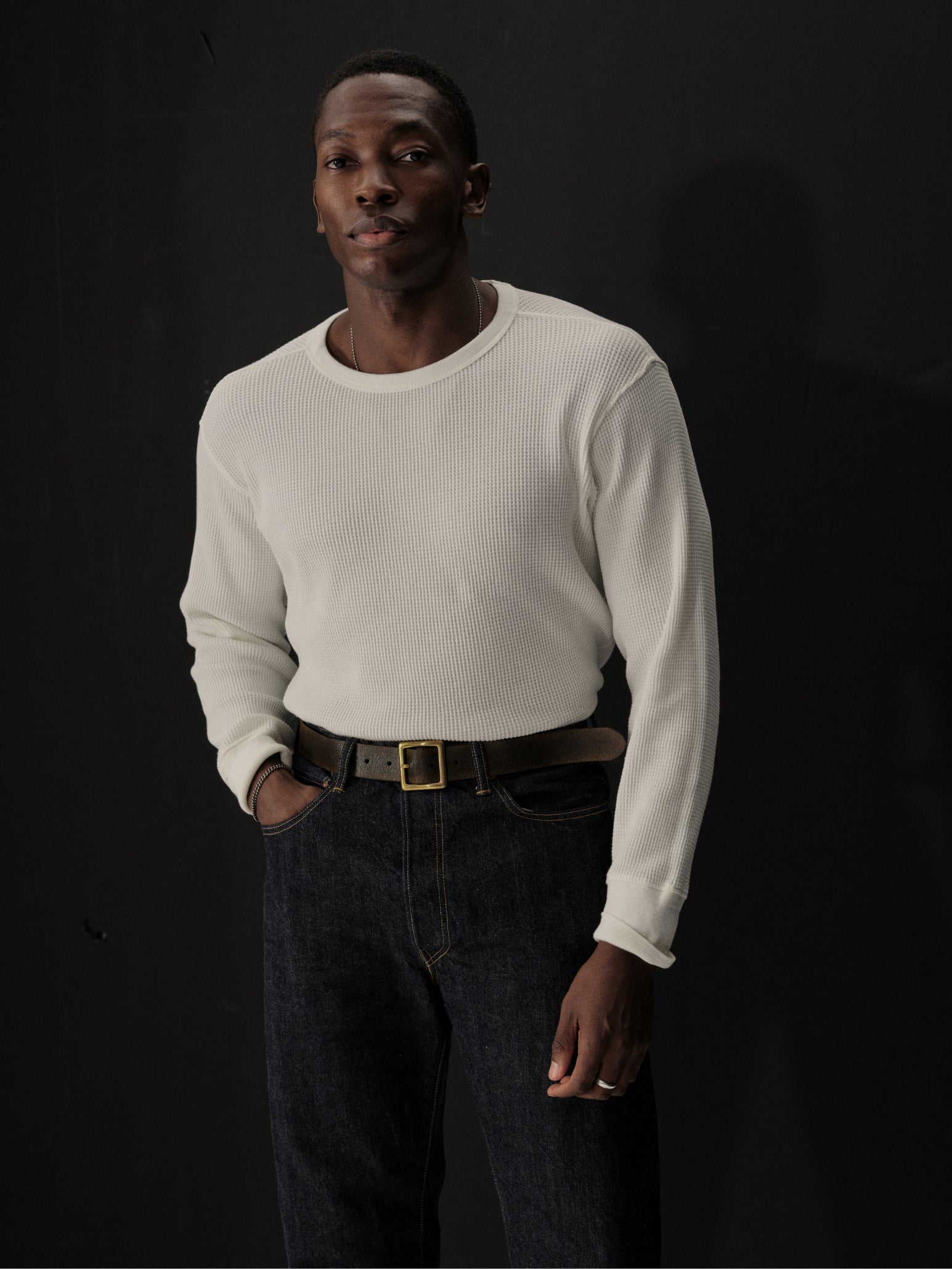 Knit at our Mohnton, Pennsylvania mill from American ring-spun cotton, our medium weight Toughknit fabric gives this tee a smooth drape, while rib-bound construction ensures a durable collar. Each piece is double-washed for a broken-in texture. Cut with a dialed-in Classic fit.