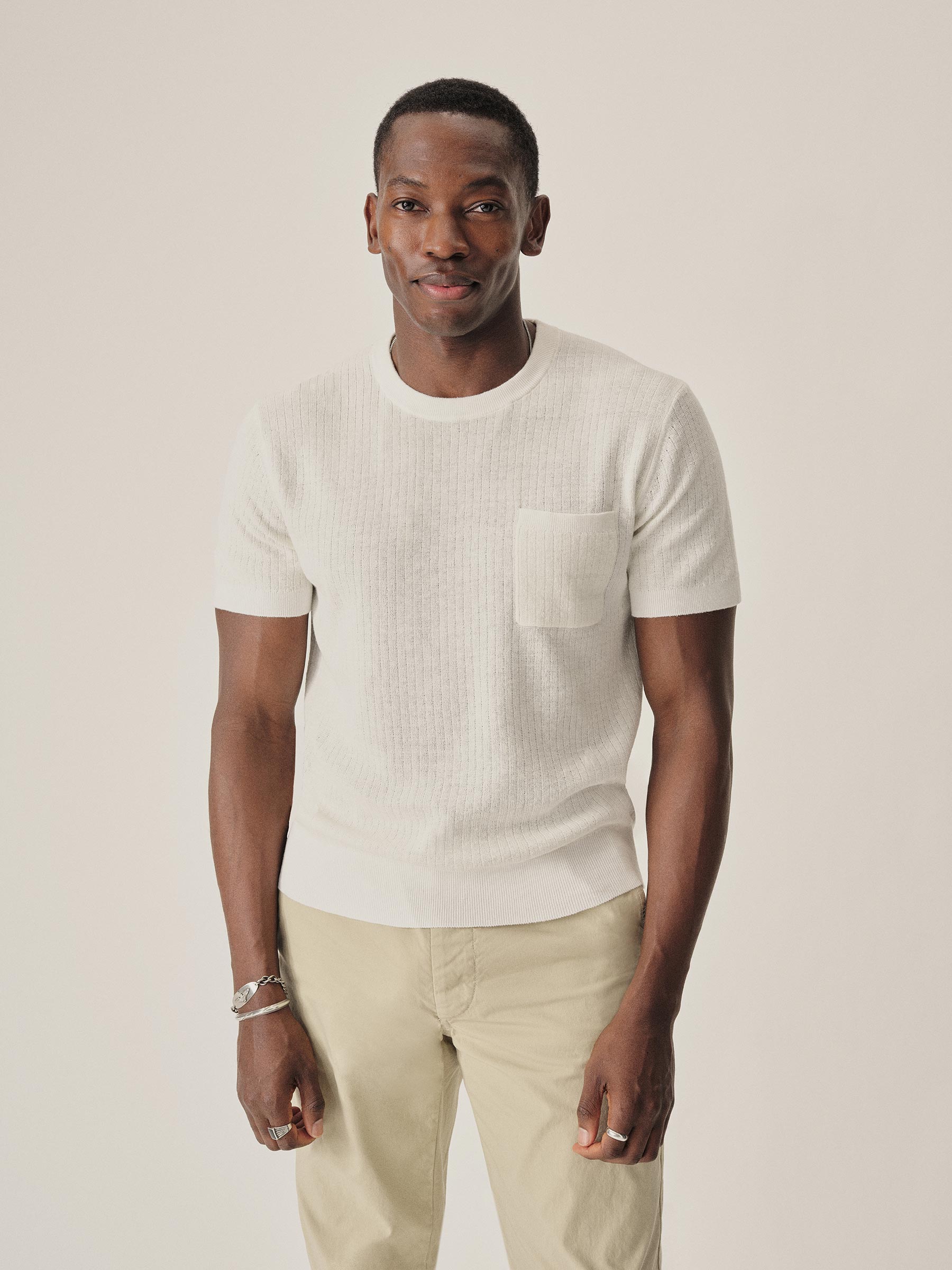 White Yuma Hemp Rib Knit Pocket Tee