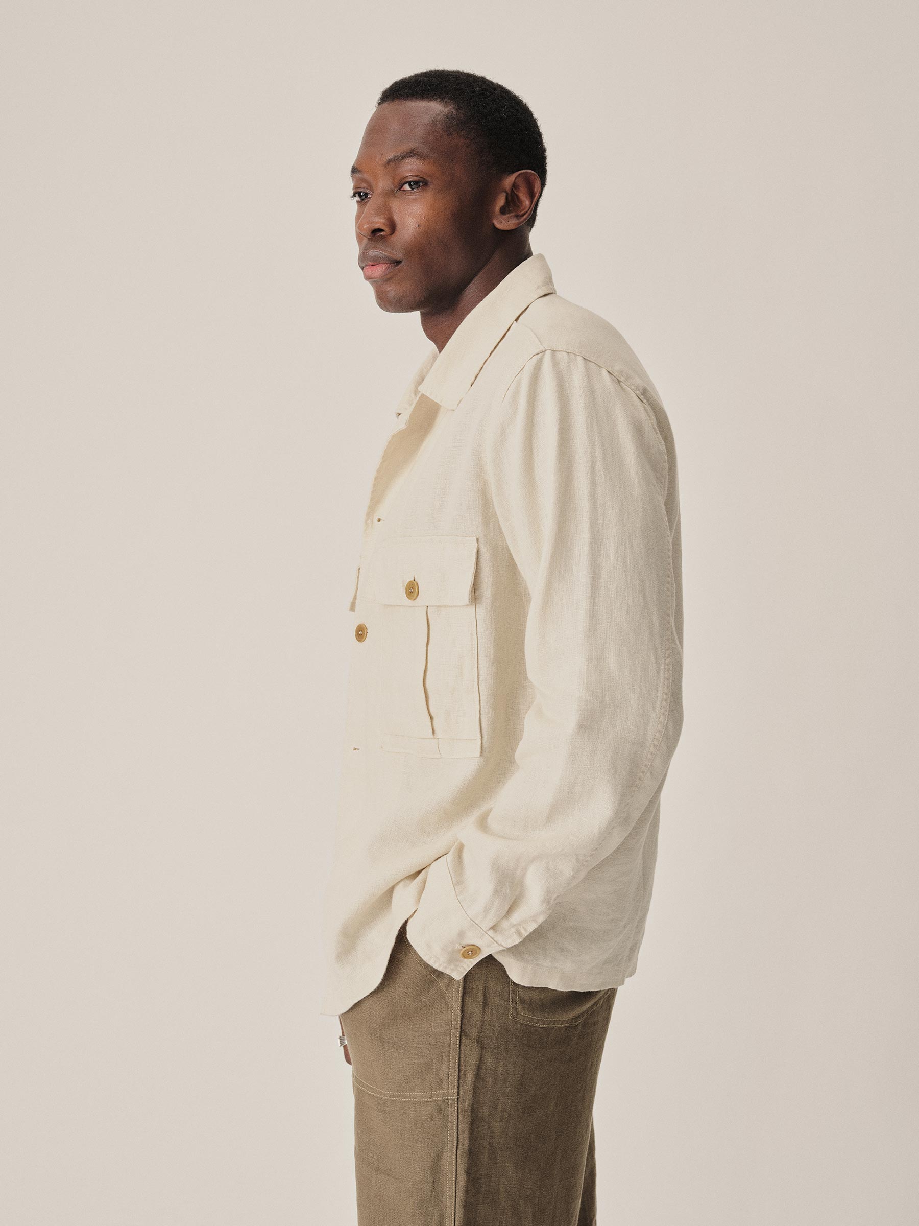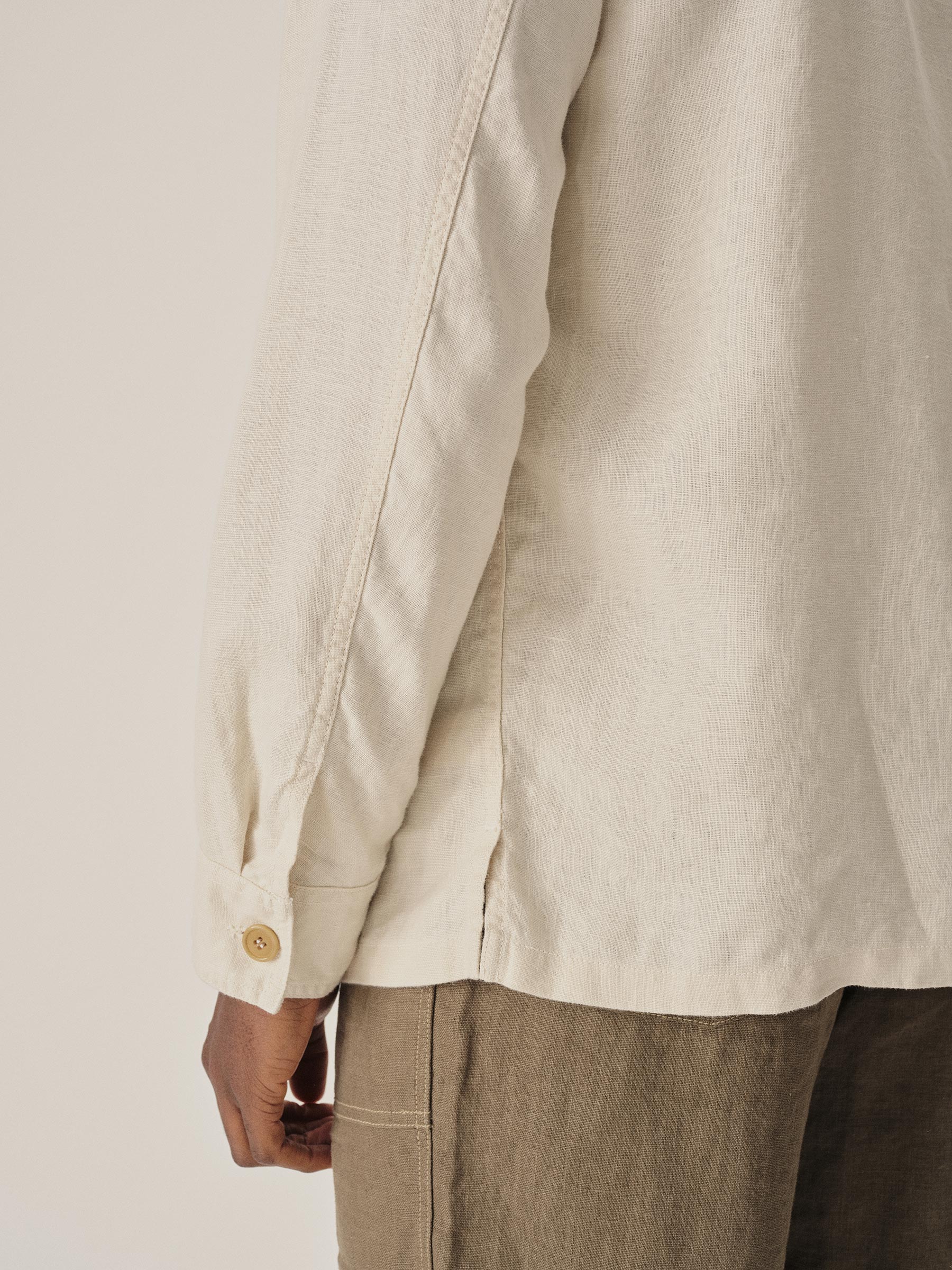 Worn White Loomed Linen P-43 Fatigue Shirt